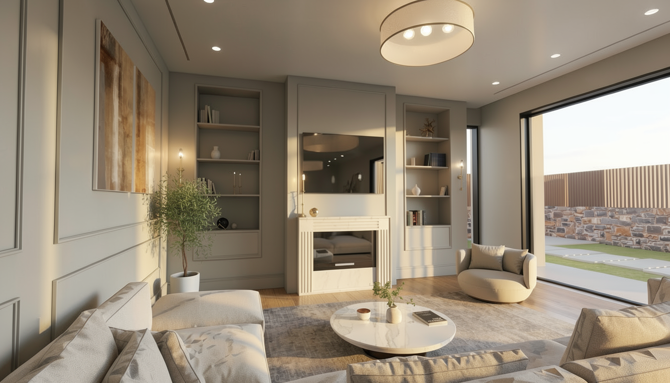edit the provided image while preserving the exact camera angle overall perspective courtyard composition and spatial layout make the following architectural adjustments remove the small wall projection on the left side in front of the door so that the wall line becomes clean and flush add one full height floor to ceiling window behind the tree at the rear side of the courtyard integrated naturally into the existing architecture with slim dark frames change all door handles to a light silver finish after these adjustments transform the material and atmosphere into a bright scandinavian minimalist style replace the dark concrete like surfaces with smooth off white to warm light grey plaster walls light natural oak accents where appropriate and a light fine grained mineral floor keep the space very calm clean soft and refined with subtle warm indirect lighting and natural daylight maintain the minimalist architectural character realistic materials soft shadows and an uncluttered healthcare atmosphere no people no furniture no decoration no excessive styling and no other architectural changes