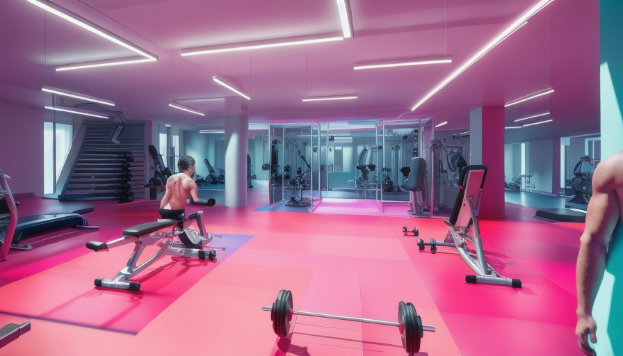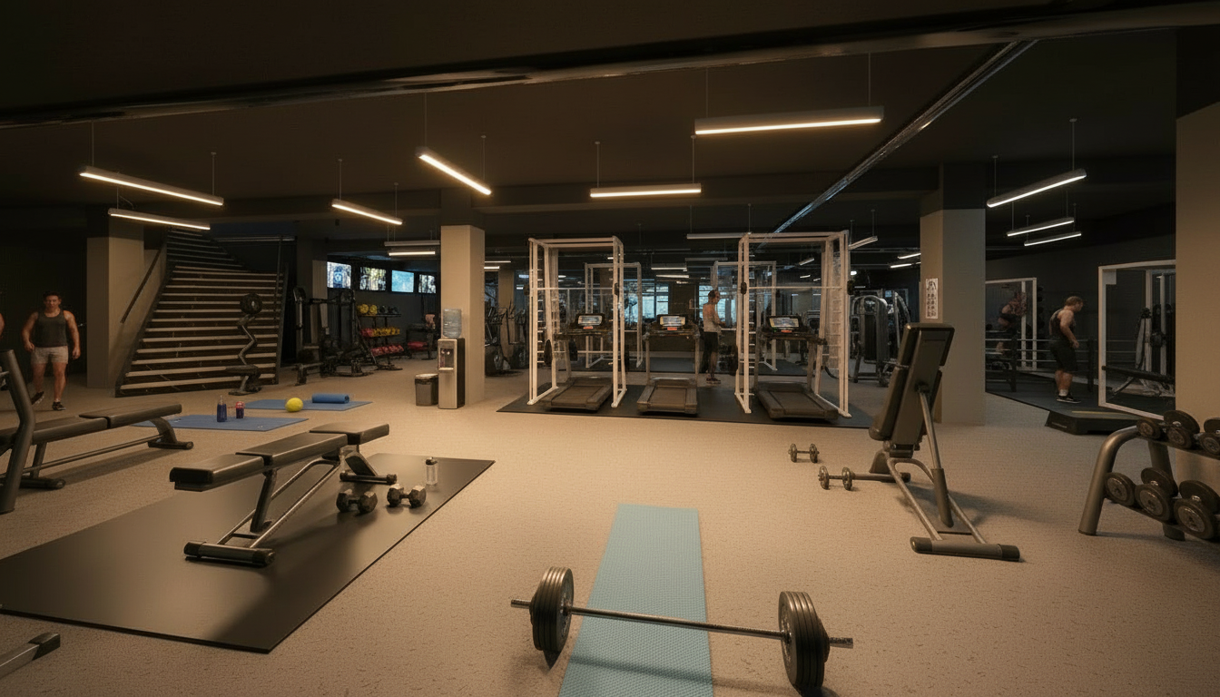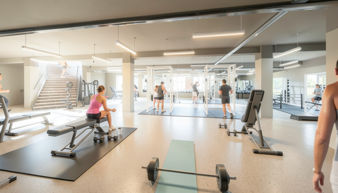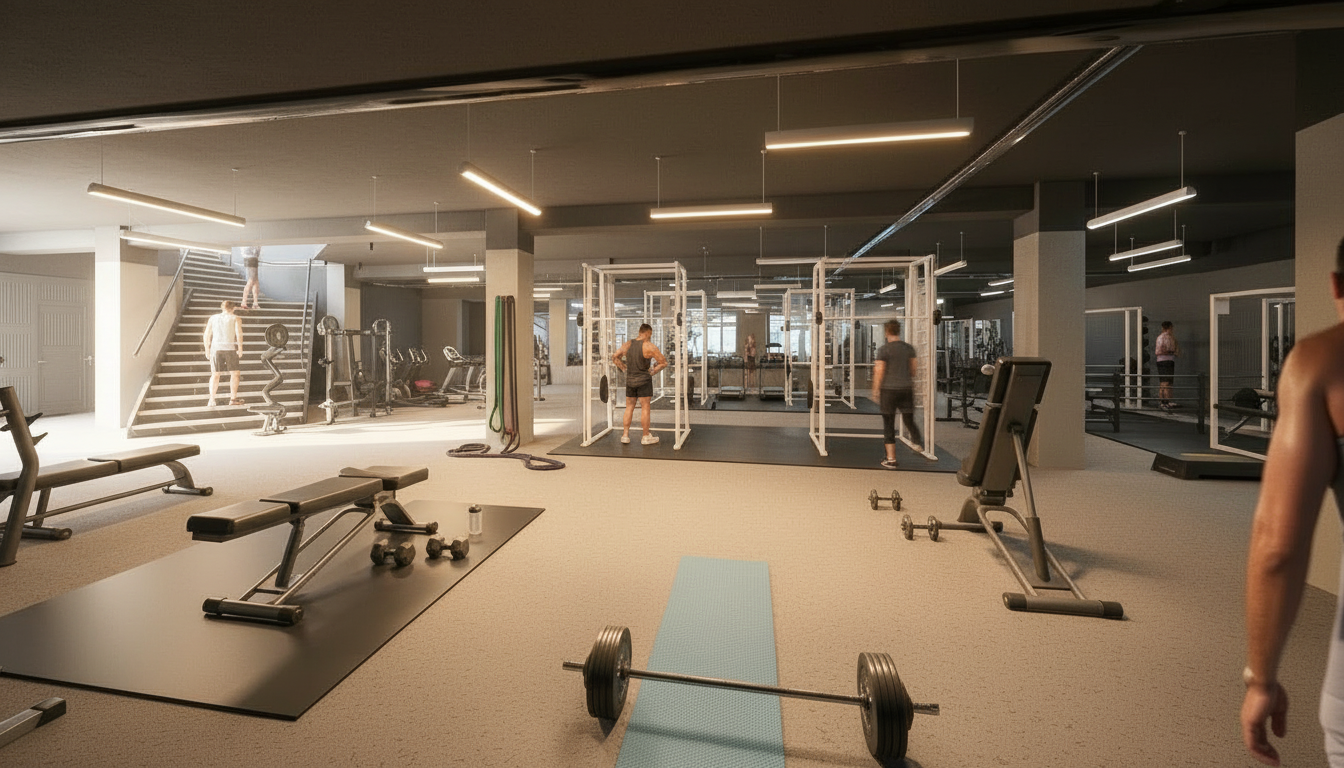 make a bright basement gym with people working out