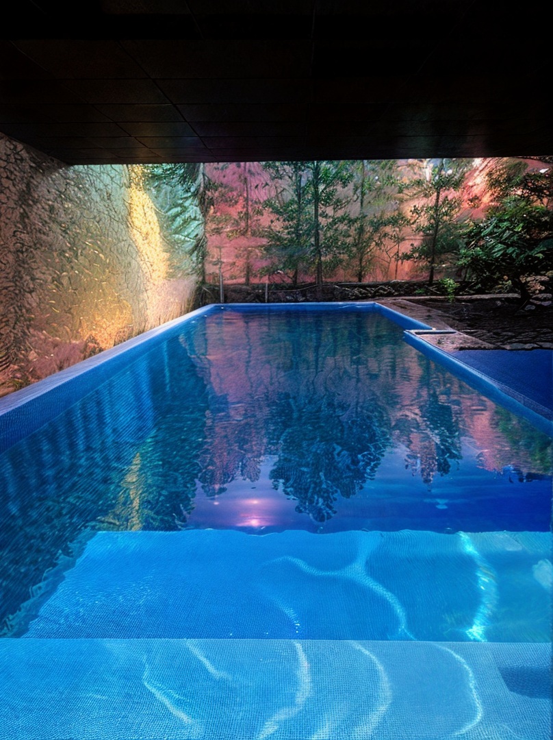 outside garden is luxurious dubai villa swimming pool floor is natural white travertine
