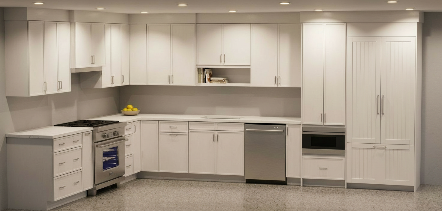 change cabinets to soft white match ref panels to cabinets door style