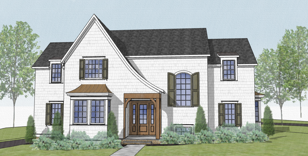 fall warm white shingle siding with full bright landscaping