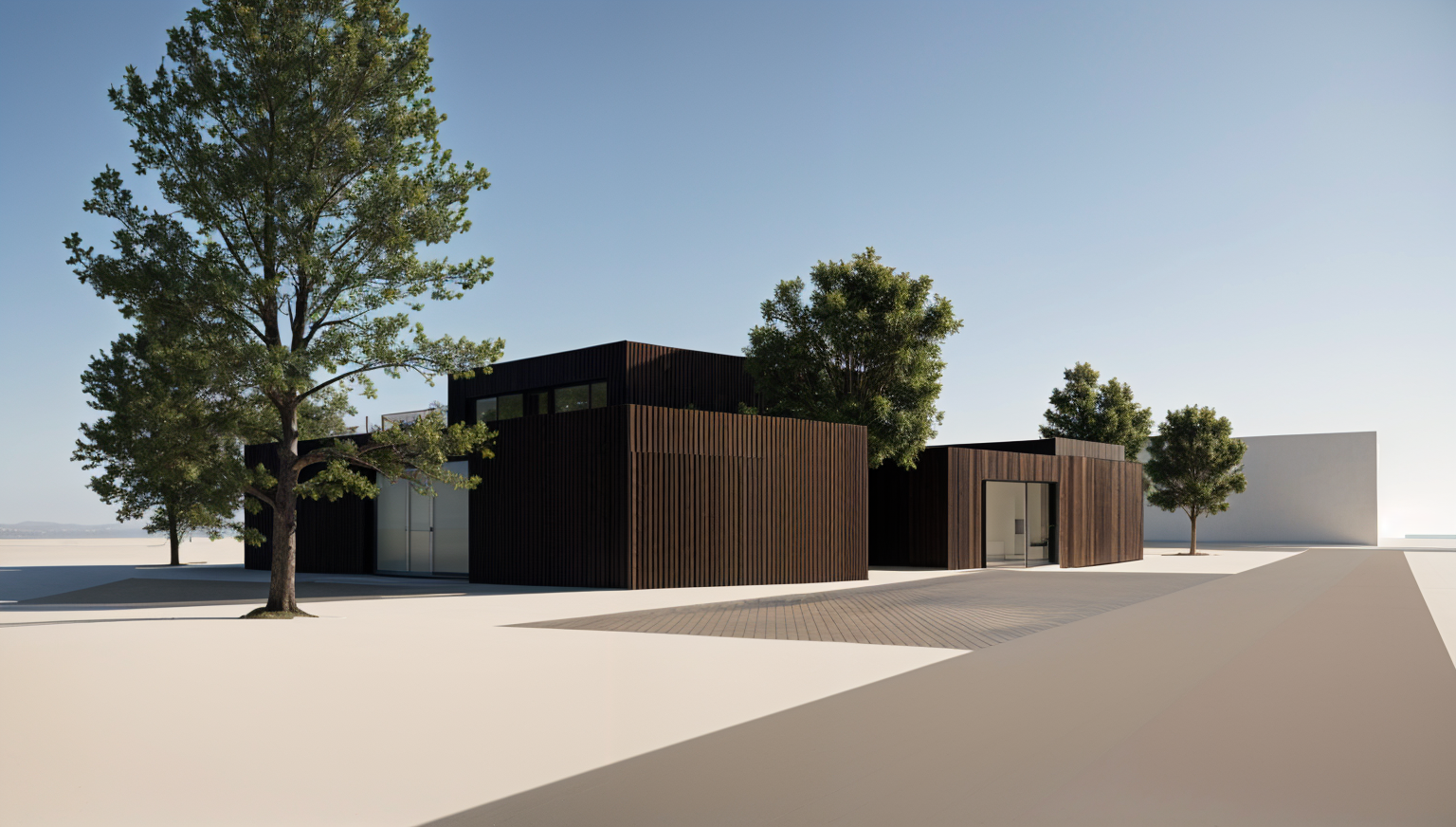 rooftop community space integrated with housing complex large shared terrace with outdoor kitchen long tables gardens pergola shading connected by ramps and stairs from courtyard below people cooking eating relaxing strong relationship between building and roof warm materials contemporary urban housing realistic rendering soft daylight