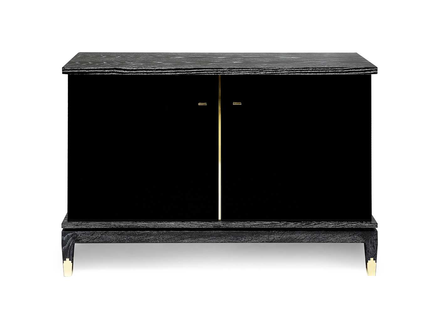 warm oak finish with bronze accents at foot and pulls completely match very very exact structure and metal details of reference image remove background architecture