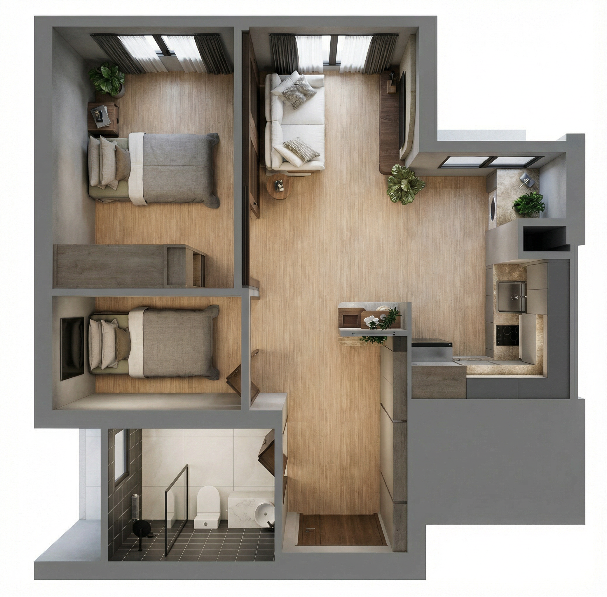 please keep realistic looking but modernize the finishwork like flooring and cabinets with luxury scottsdale look