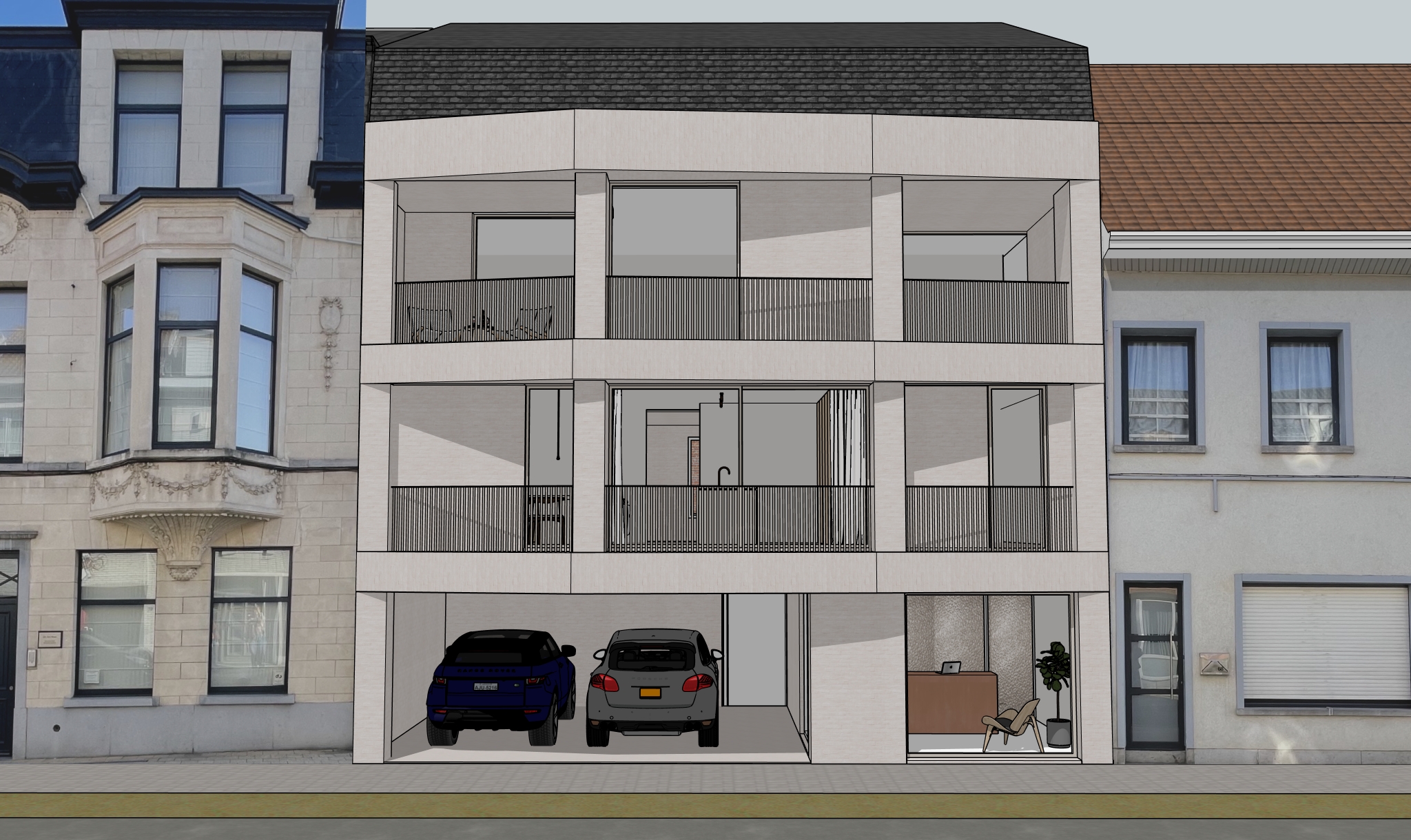 make sure the windows and fence of the middle building are light beige and the facade is small light brick