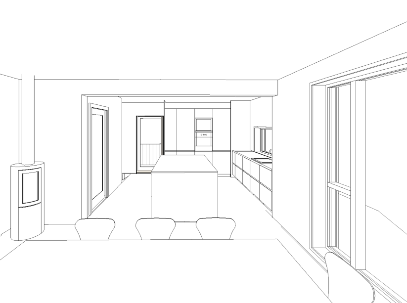 keep window frames black hight cabinets on the back wall no chairs around the island follow 3d model