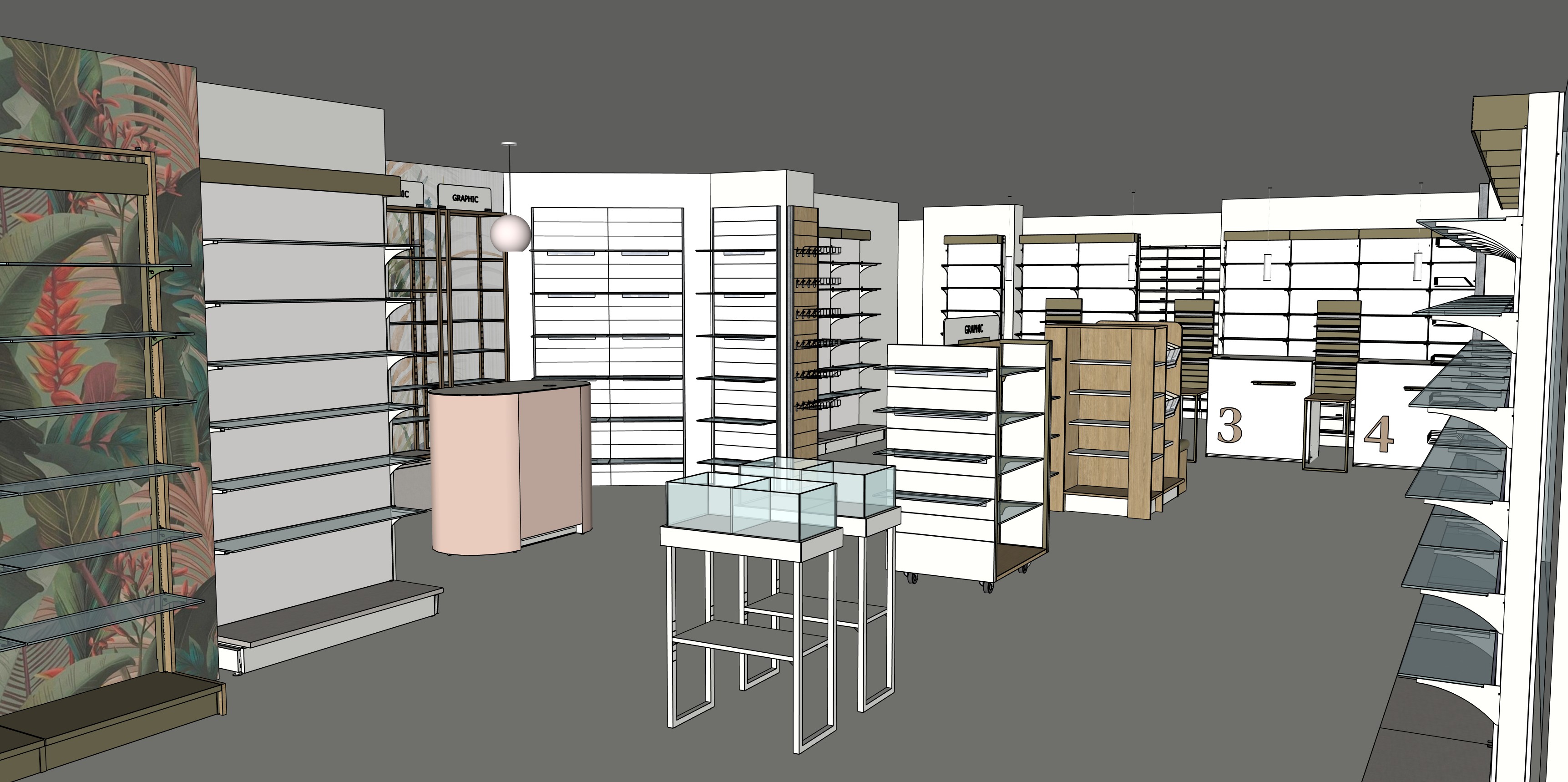 inserisci i prodotti sugli scaffali e fai un illuminazione adeguata