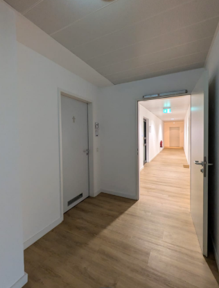i would like just to paint the walls on the left side of the image in a citric yellow like 21 060 01 wildblumengr n from sch ner wohnen design collection and please enhance the lighting