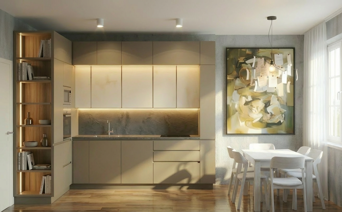 crea una imagen fotorealista a partir de esta de sketchup la unica luz natural que entra a la tienda es desde la puerta de la izquierda el resto va todo cerrado y sin ventanas