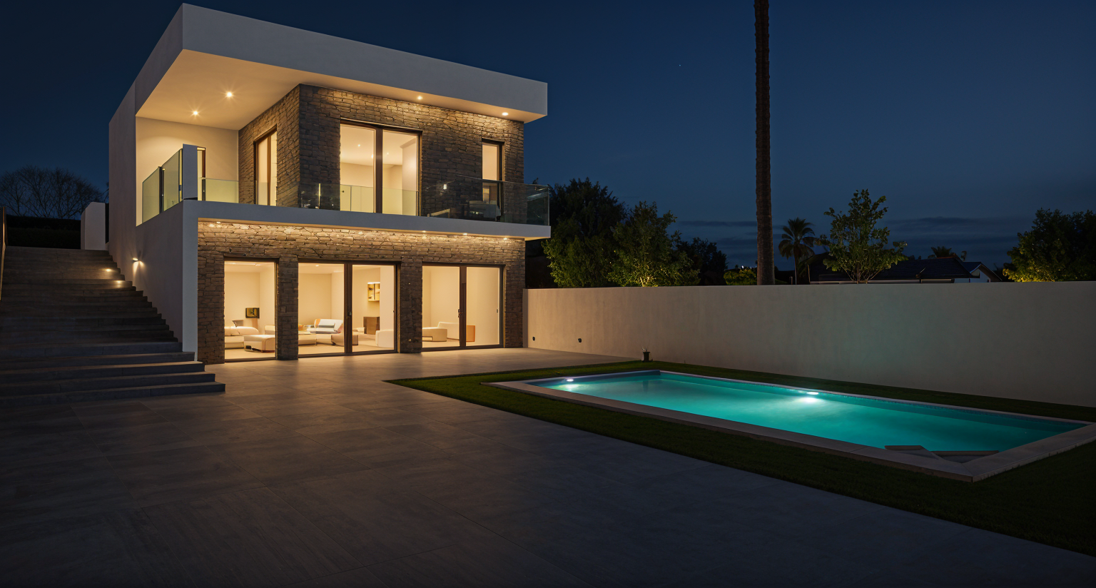 i need the steps to look like a smooth grey concrete while keeping the pillars the same front doors to match the same color as the pilars dark flat stacked stone veneer to the bottomw of the lower windows