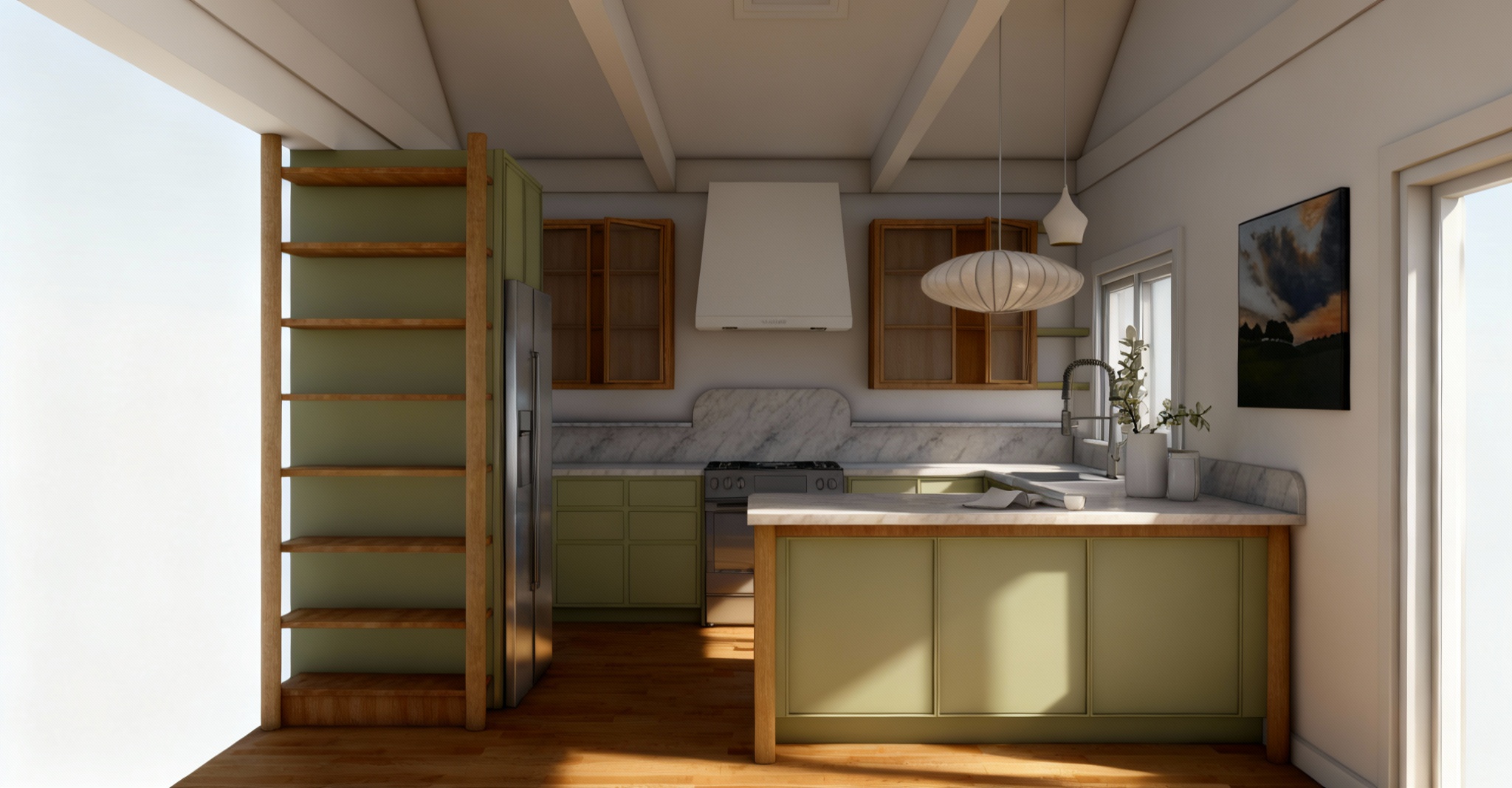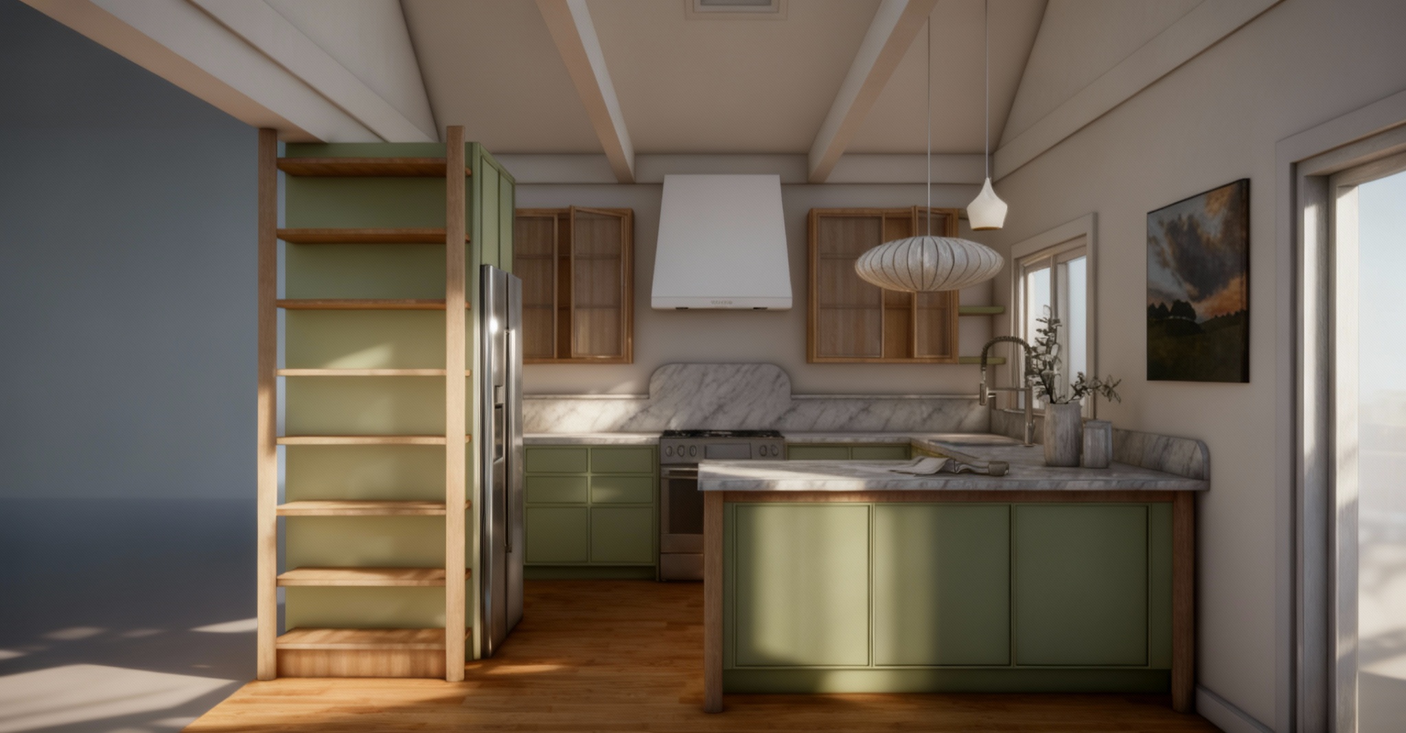 very soft contrast very light shadows keep ceiling white keep opening on the left