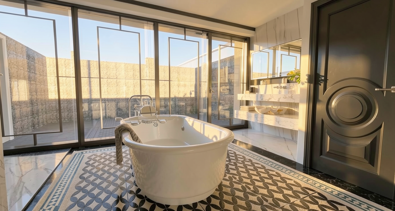 change the parking to bitumen change the vertical cladding to black change the horizontal cladding to white add road around where the grass is and remove the background add cars in parking with people walking to the building