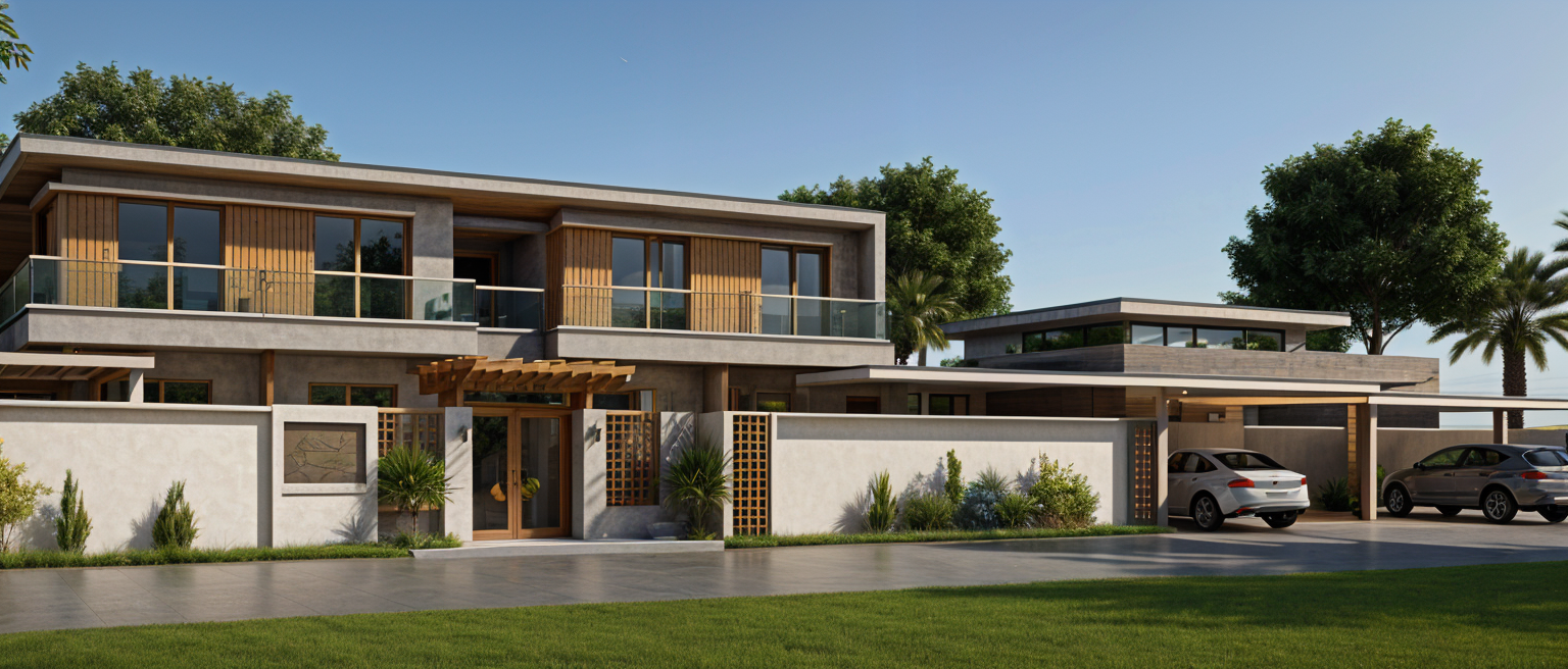 render an axonometric top view of modern house interior layout with a sophisticated and cozy atmosphere use warm beige and soft cream tones for the walls implement light oak wood for the flooring to give a natural touch incorporate modern furniture with sleek lines featuring a mix of matte white and dark gray use soft ambient lighting to enhance the mood add subtle greenery for a touch of freshness the open living space should feel airy and inviting with a seamless flow between areas maintaining a minimalist yet elegant aesthetic
