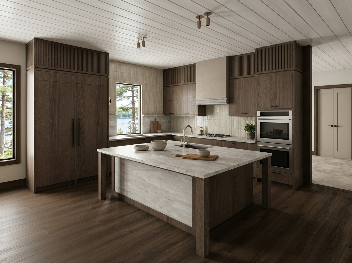 make the post flush with the edge of the kitchen island and add another post to the otherside of the island don t change anything else