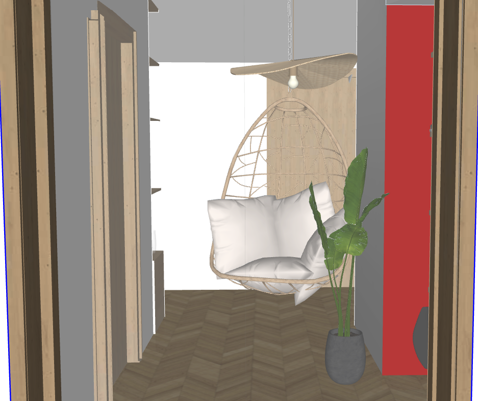 on the wall right to hanging chair there is big mirror