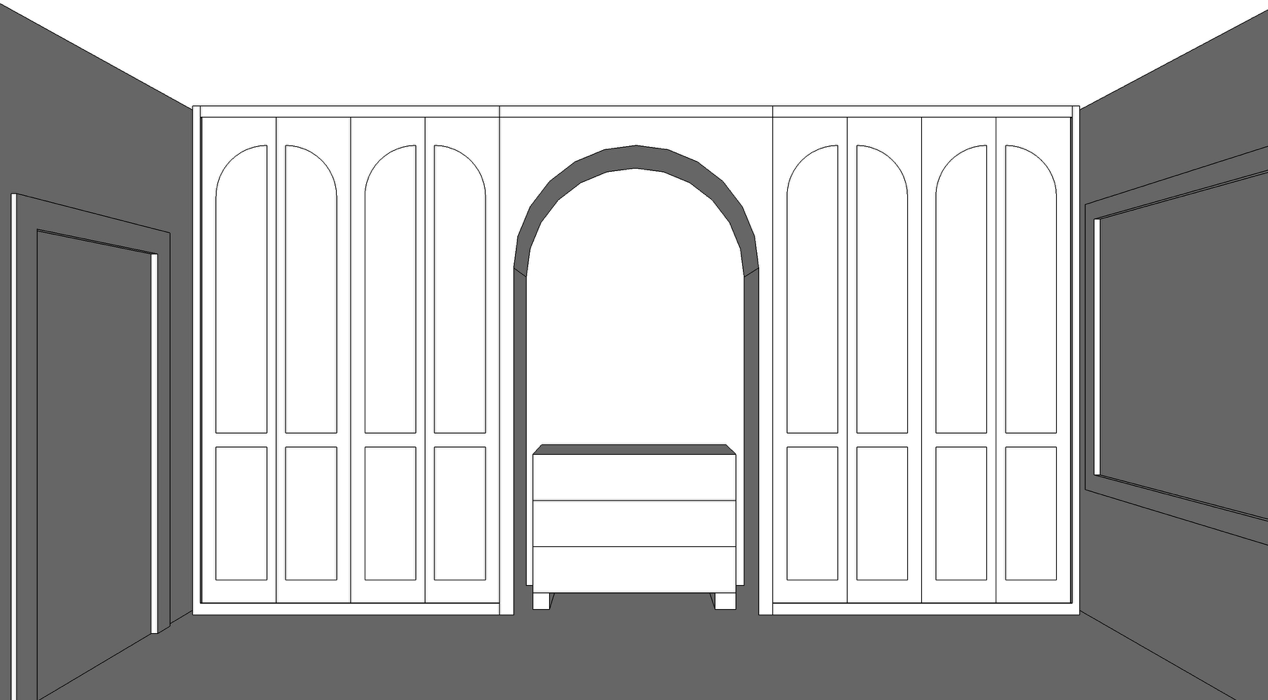 wardrobes in light blue with light rattan panel inserts carpet sisal walls off white ambient lighting in arch chest of drawers dark wood