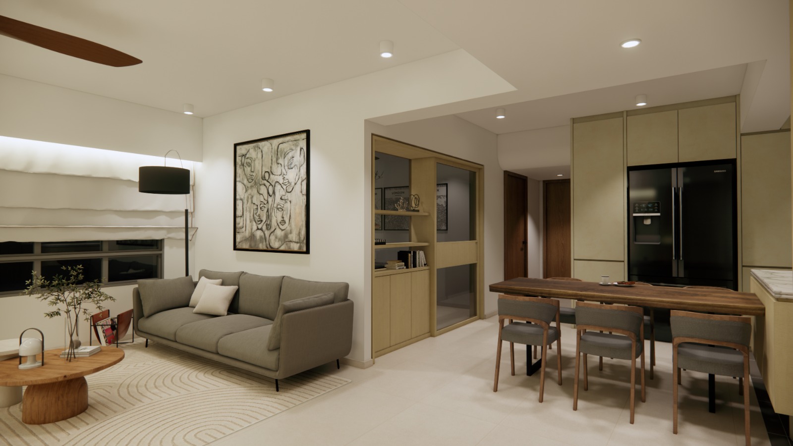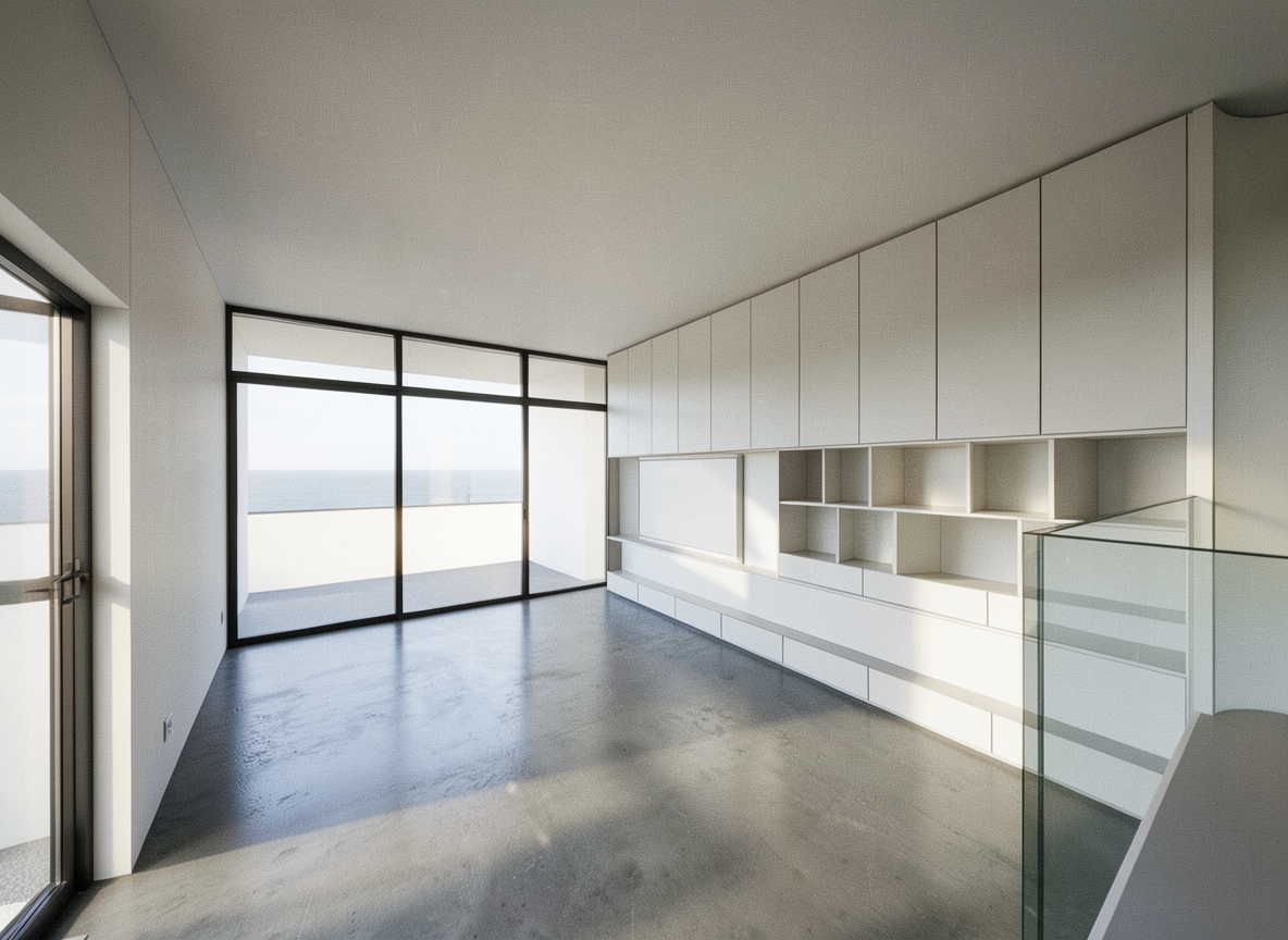 enhance this render to ultra photorealistic quality while strictly preserving all existing geometry materials and design apply high end architectural photography post processing balanced exposure natural white balance improved contrast and realistic dynamic range introduce soft global illumination effect and subtle light falloff for depth lighting refinement simulate natural daylight with soft shadows and gentle gradients slightly directional but diffused overcast sky enhance ambient occlusion in corners and contact points add subtle photographic effects mild depth of field realistic lens response slight bloom on highlights and very light film grain material enhancement no changes improve perceived realism through micro contrast texture clarity and natural roughness variation without altering colors or finishes tone mapping cinematic soft contrast no blown highlights no crushed blacks final look high end interior photography clean natural and believable not stylized not cgi