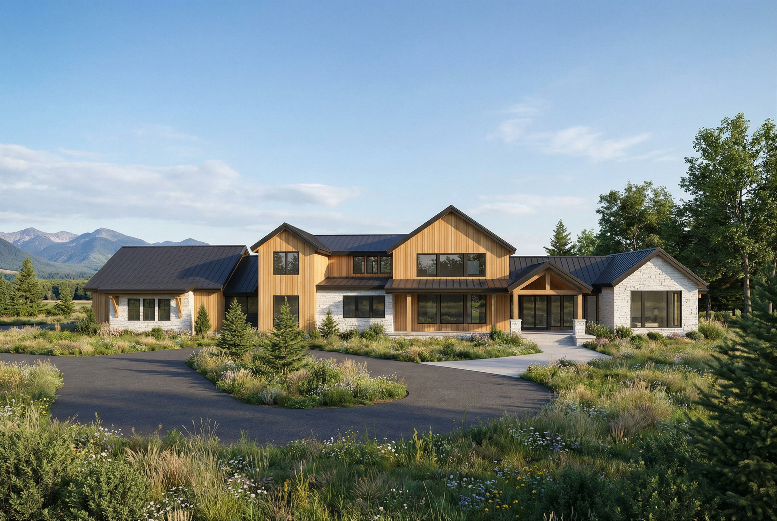 it s important to keep the sizes of everything the same change textures and materials but keep the sizes of everything the same make rock realistic its important to keep to scale this room is big do not change size of windows or doors do not add doors or windows do not change or add fixtures warm modern luxury kitchen large waterfall island with light gray marble or quartzite subtle veining polished finish thick countertop profile full height slab waterfall edges light natural wood cabinetry mixed with painted off white cabinets flat panel doors minimal hardware integrated appliances soft warm lighting oversized pendant lights with pleated fabric shades and brushed brass accents tall brass faucet neutral color palette creamy whites warm taupes light wood tones wide plank oak flooring clean and minimal styling high end residential design soft ambient glow architectural visualization ultra realistic 8k detail dont add fireplace add art to back wall