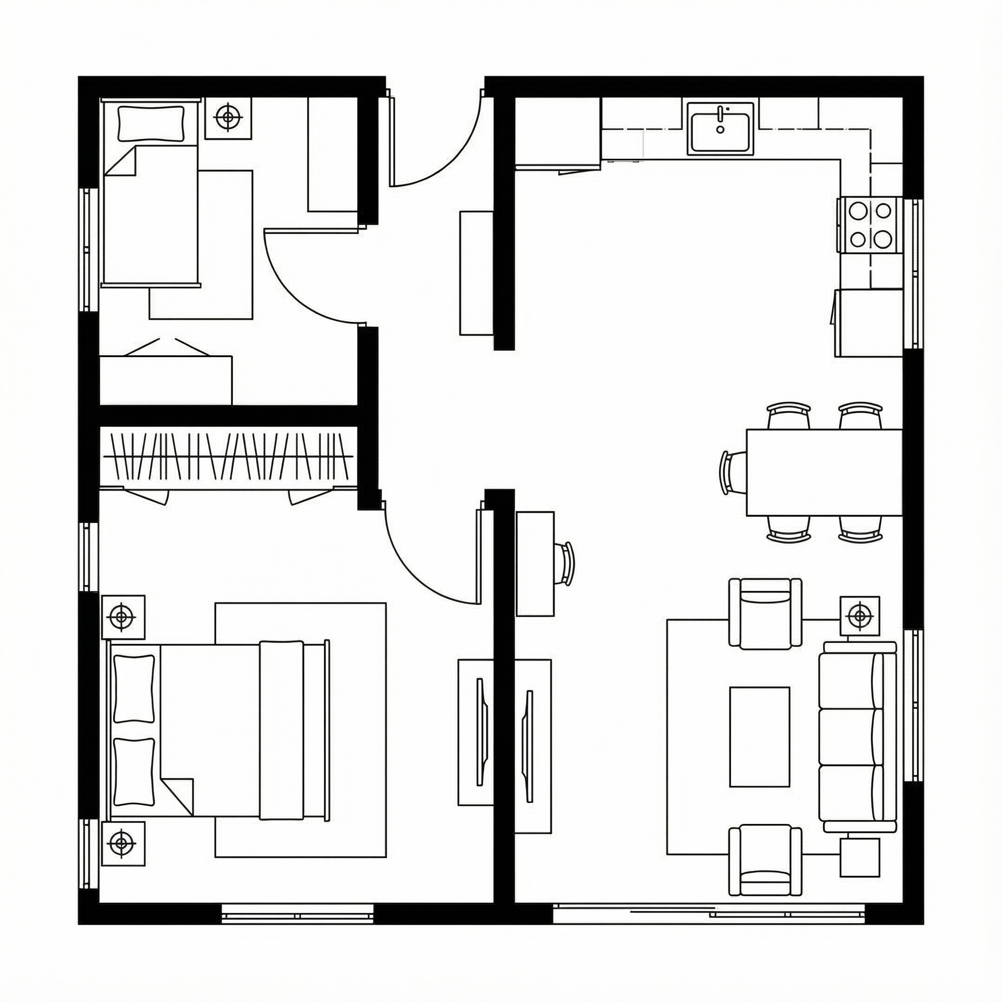 convert this floor plan into a realistic isometric 3d view of a full house show the space from an elevated angle with furniture walls and details visible use the same furniture as shows on the plan do not change the orientation of the floorplan