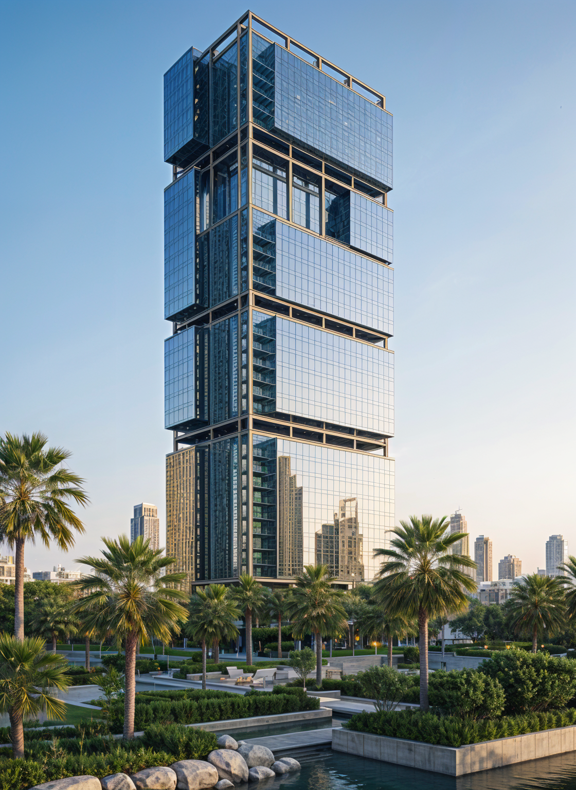 nicholas grimshaw exterior shot 437 the building will resemble the model in the photo without any additions or new structures it will be entirely made of glass and steel have 50 floors and its exterior will feature mirrored glass that reflects the urban environment of dubai where the building will be integrated it will be situated on a secluded plot in the heart of the city s administrative and economic center the vegetation will be lush and abundant with palm trees as the main feature architecture