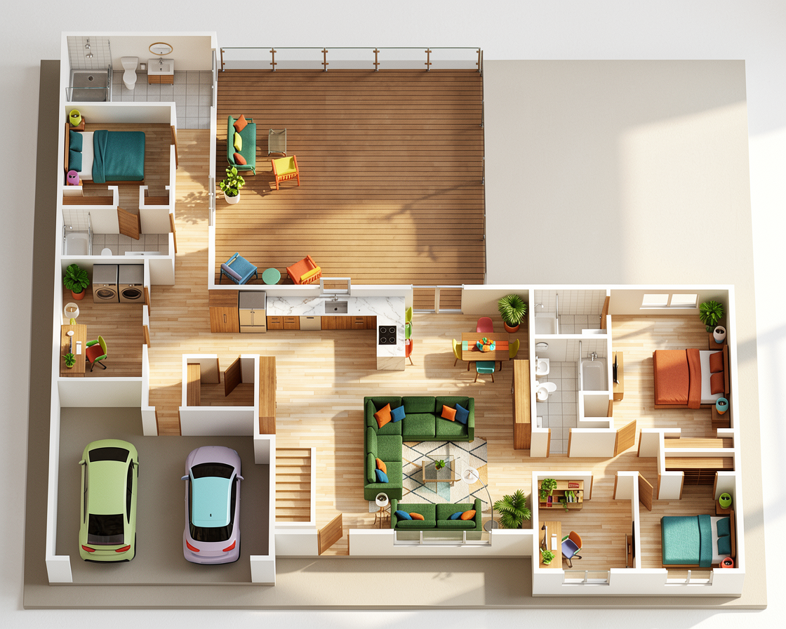 please remove cabinets and redesign this master bedroom with modern scandinavian interior