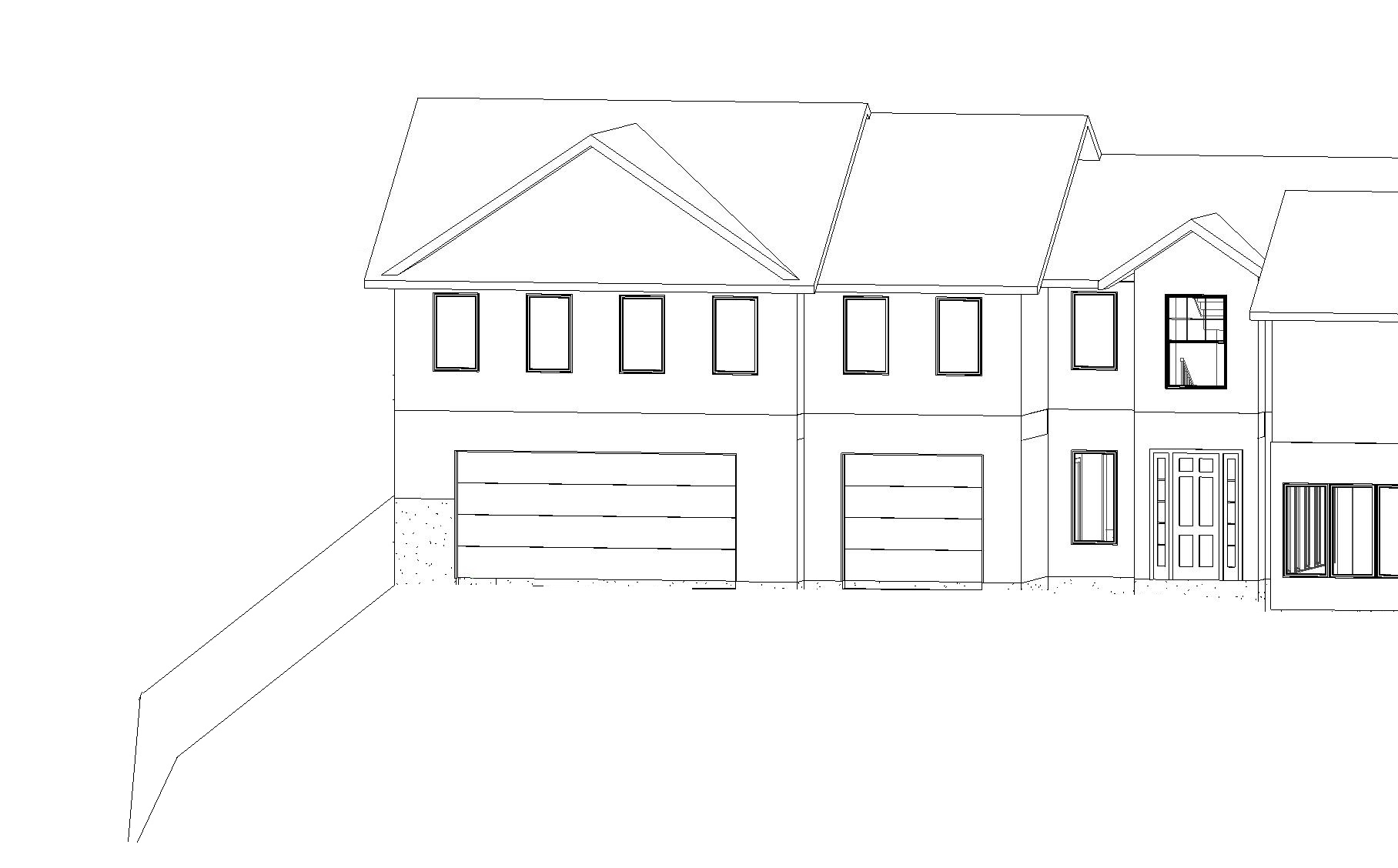render this 3d model as follows roof timberline hdz charcoal soffit and fascia black aluminum black windows and trim cedartone woodlook garage doors and front entry doors chilton ledgstone around garage doors and full height at front entrance and window above it board and batten lp smartside in all other areas in sw 7062 rock bottom retaining wall to left of garage in chilton wallstone