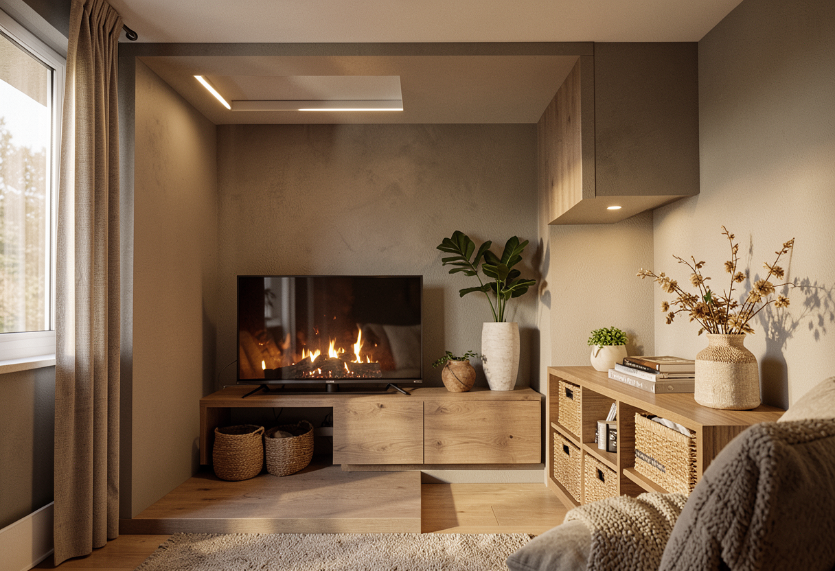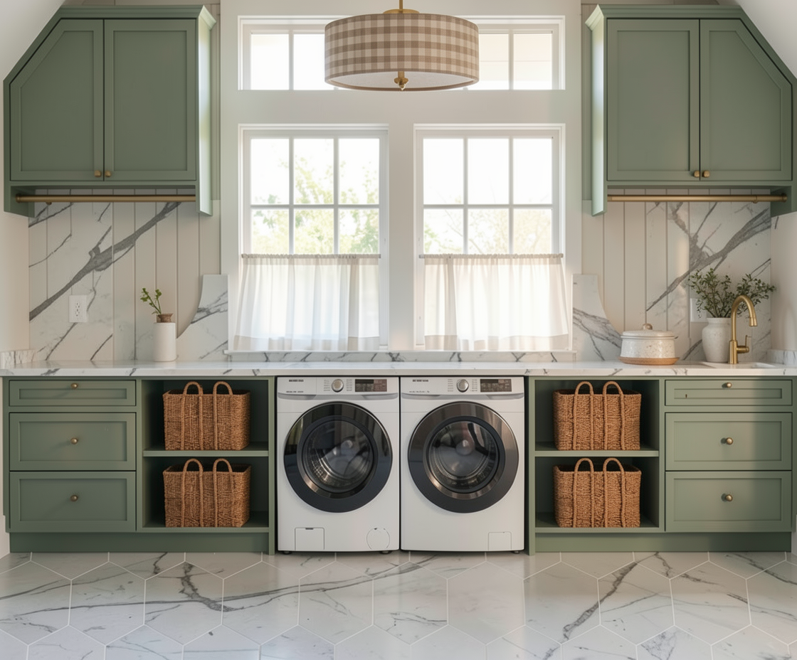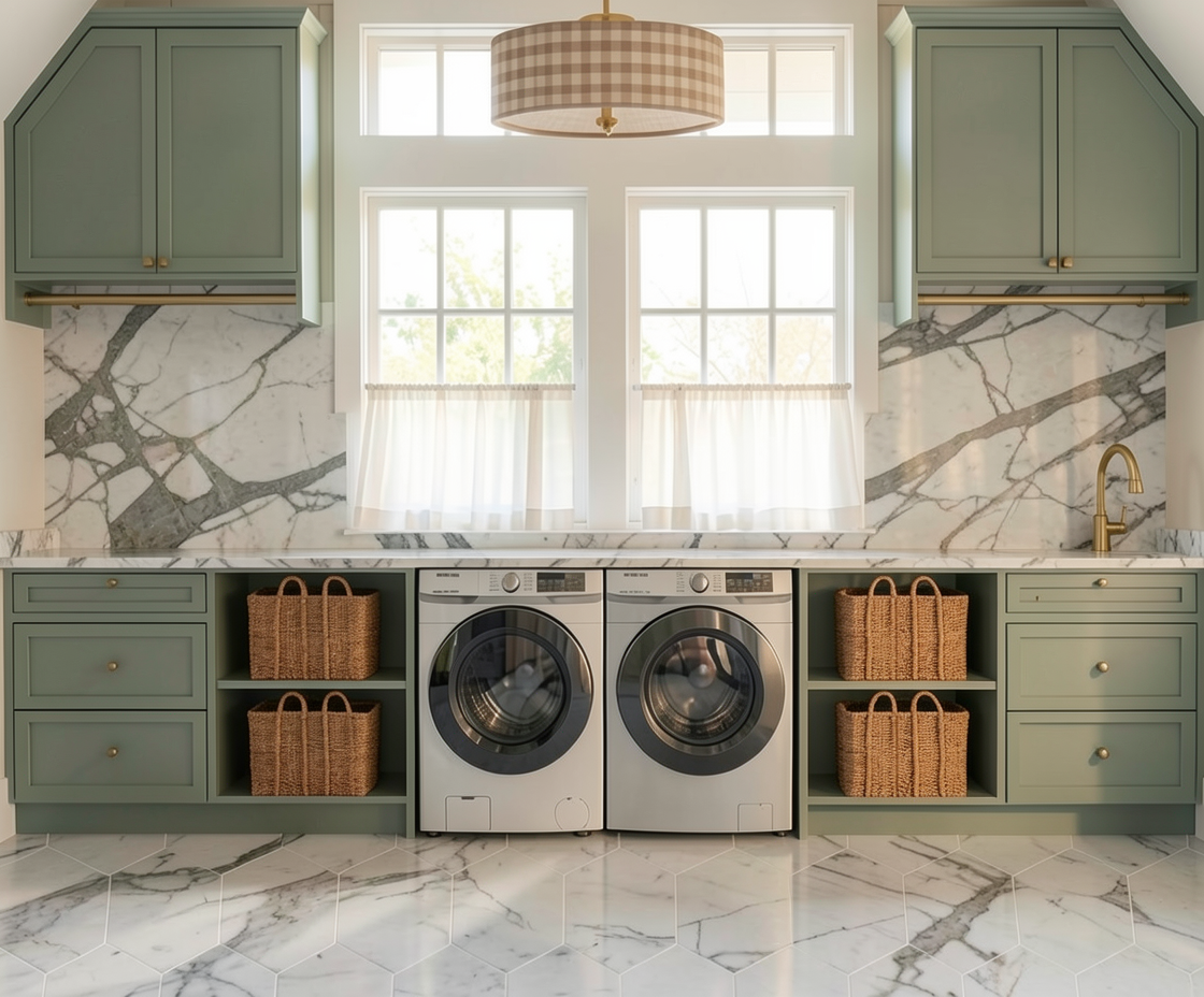 wood cabinet doors below concrete counters wood beams wood columns no background