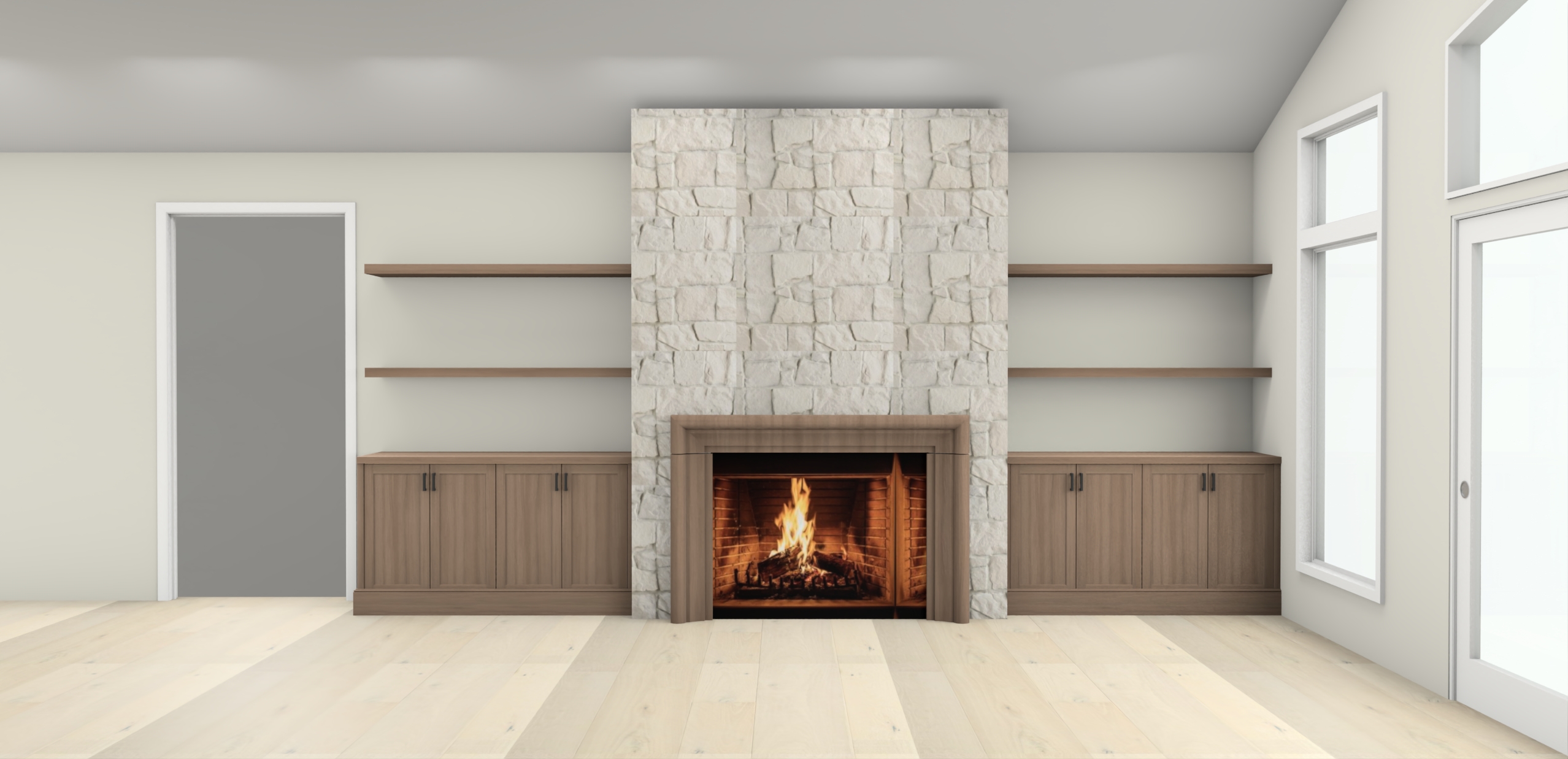 add simple staging with a plant and books add a tv above the fireplace