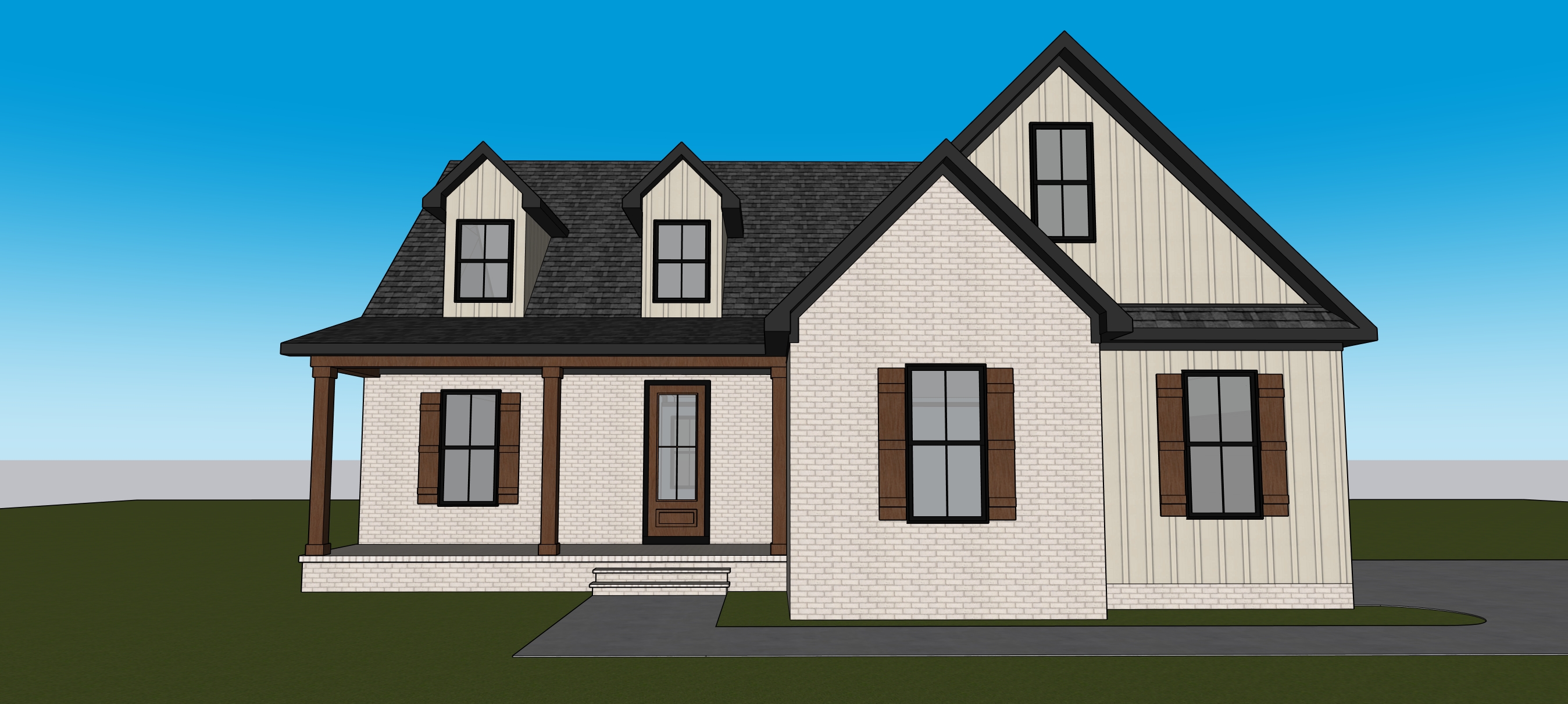 maintain colors and design trees in background add landscaping make realistic