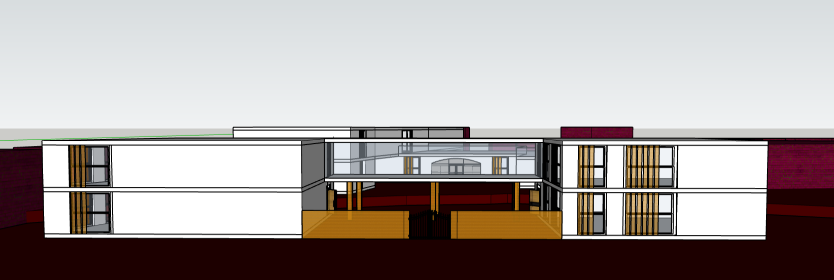 beaux arts night shot render with grass on the ground and night shot lights architecture