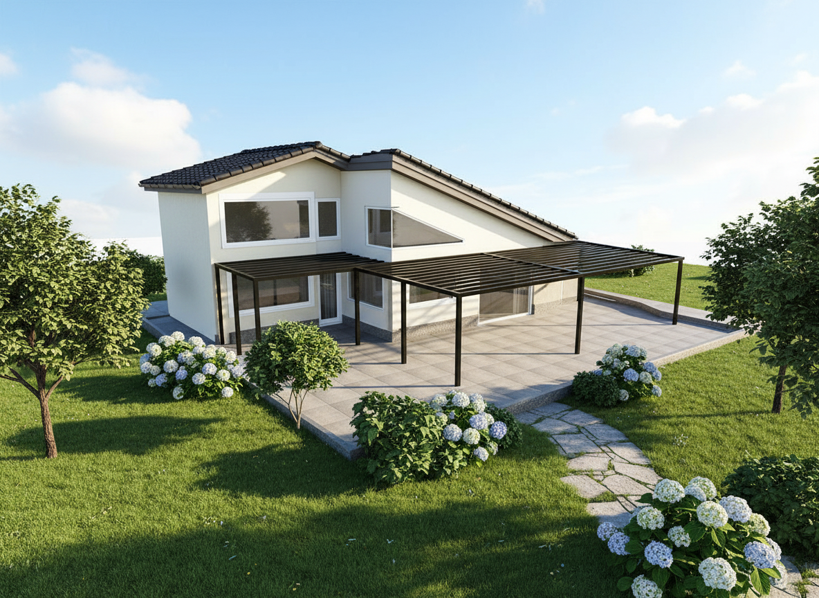 modernist exterior shot add more planting to under the canopy on the left hand side architecture