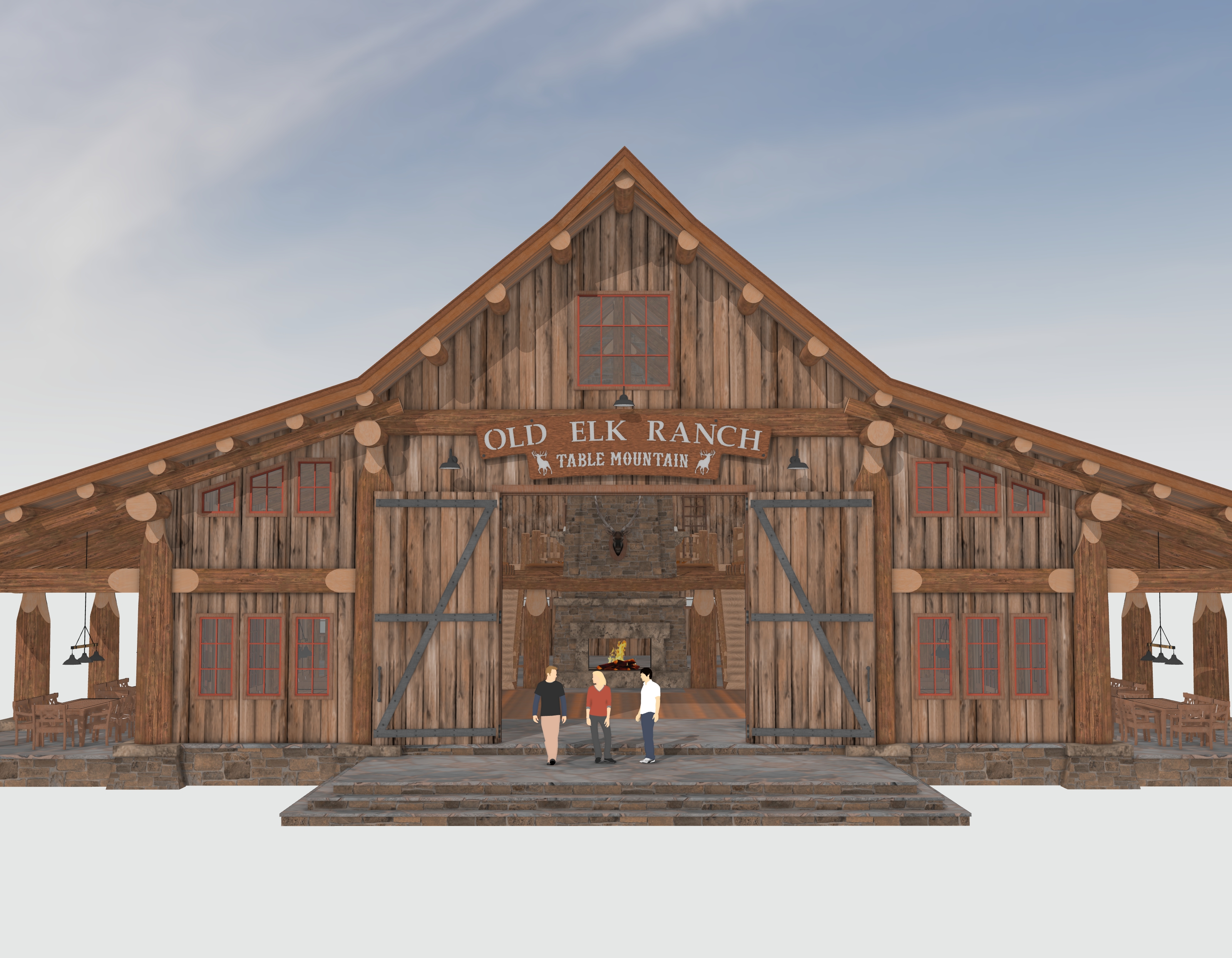 log lodge mountain evening well landscaped nearby aspen trees flagstone driveway out front