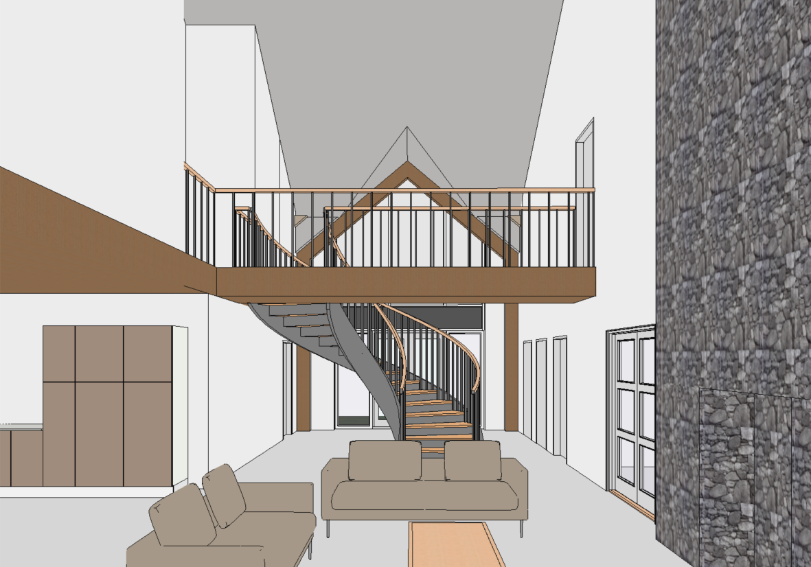 internal render of domestic house oak frame building cosy environment fire place photo like quality