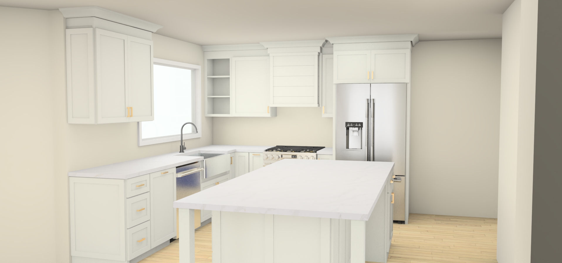 enhance with modern touches and bar stools at island