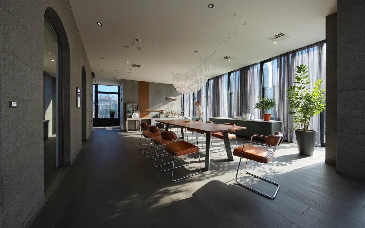 hacer un dia soleado llenar la parte derecha de plantas como stipas gauras y lavandas hacer ese espacio 1 5metros mas profundo y agregar una cocina en color madera con m rmol calacatta gold en toda la pared del fondo agregar una mesa en madera con paras anchas y aspecto macizo y sillas de minotti