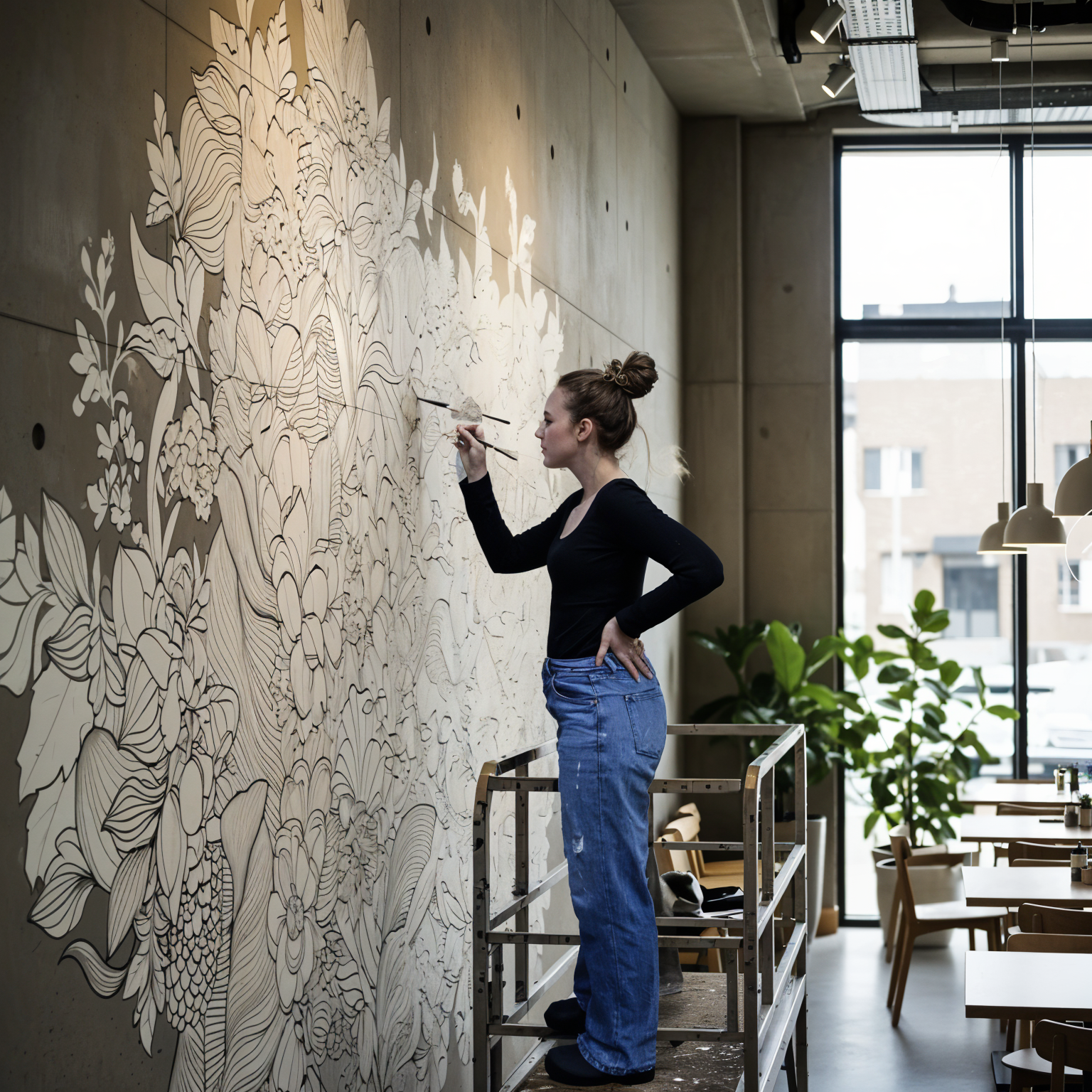 modernist exterior shot create a realistic picture of this modern house the house is clad in thin light brown wooden slats and stands on an old wall of gray brick the house is on a field with apple trees architecture