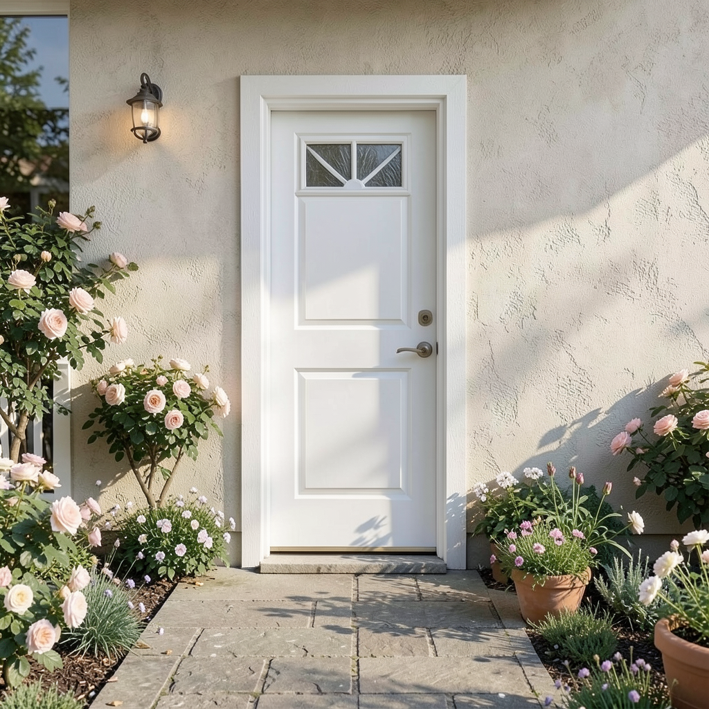 carpark in front posts are all timber add planting just footpath in front