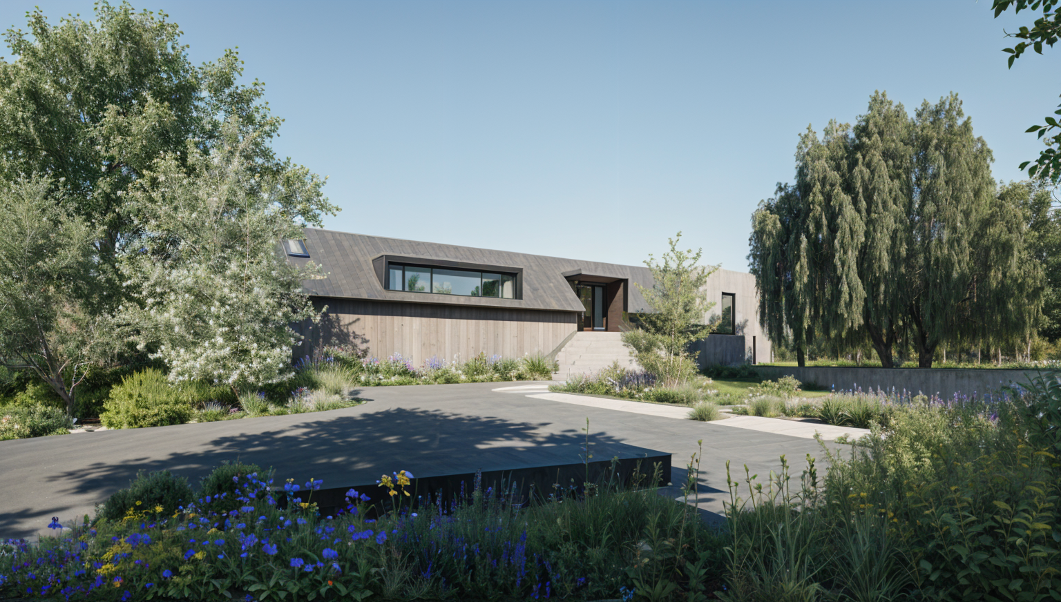 landscape real manicured lawn cloudy sky road sidewalk