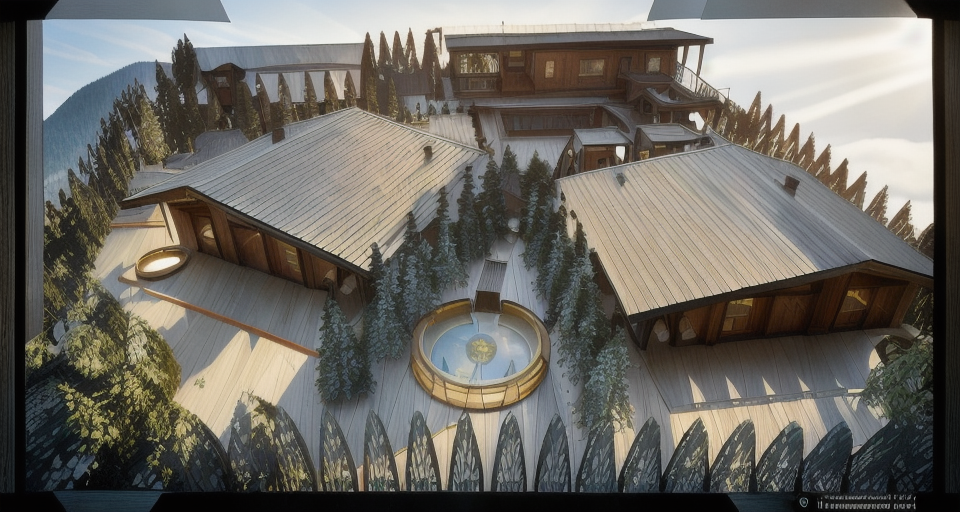 barndominium exterior shot houses in a forest in mountain sunny morning black metal roof black windows black doors wood accent and wooden finishes architecture