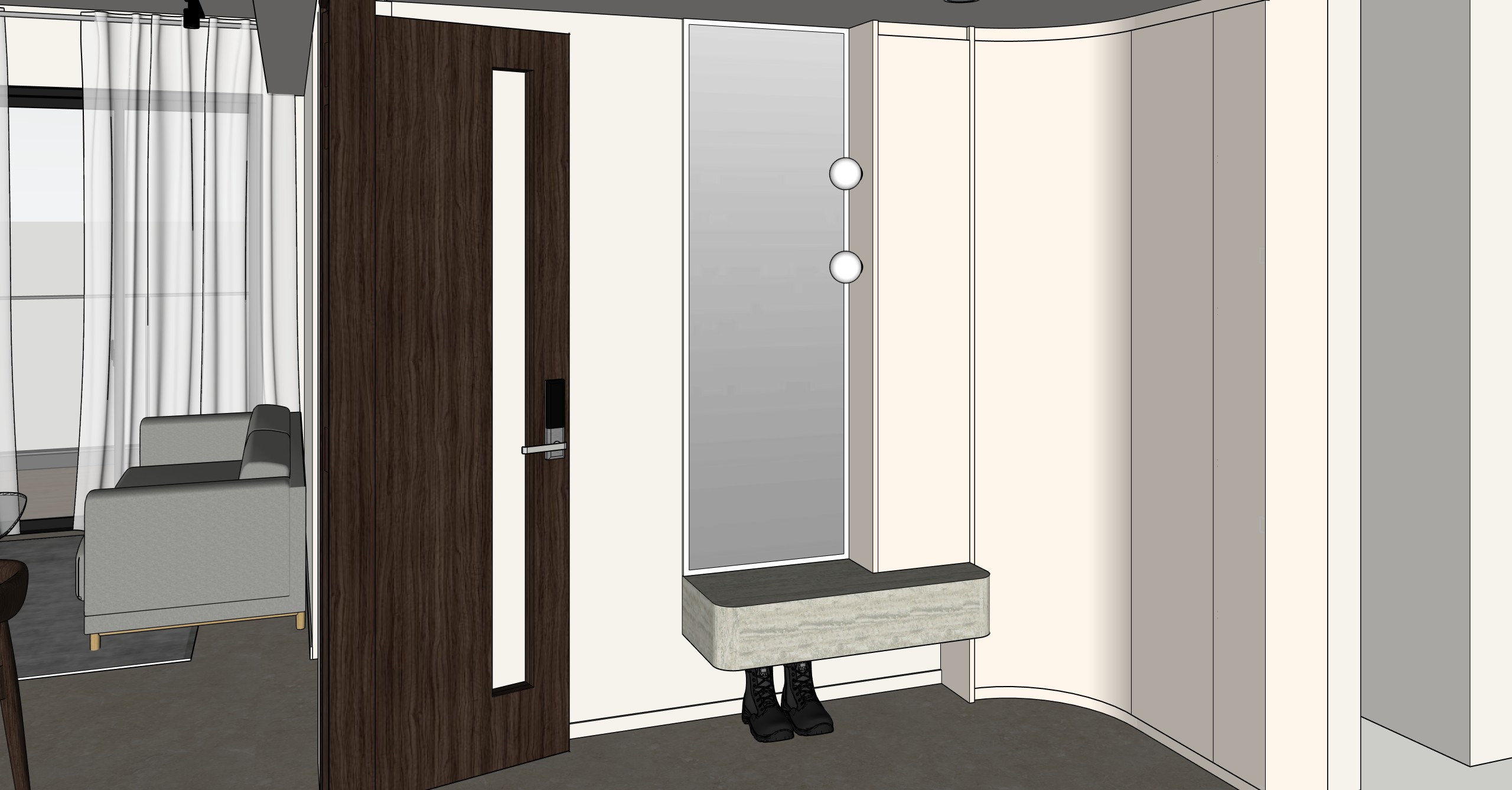 colours wood texture less grains to remain accurate as per original picture wall light beside cabinet floor tile in light beige full height cabinet in light beige
