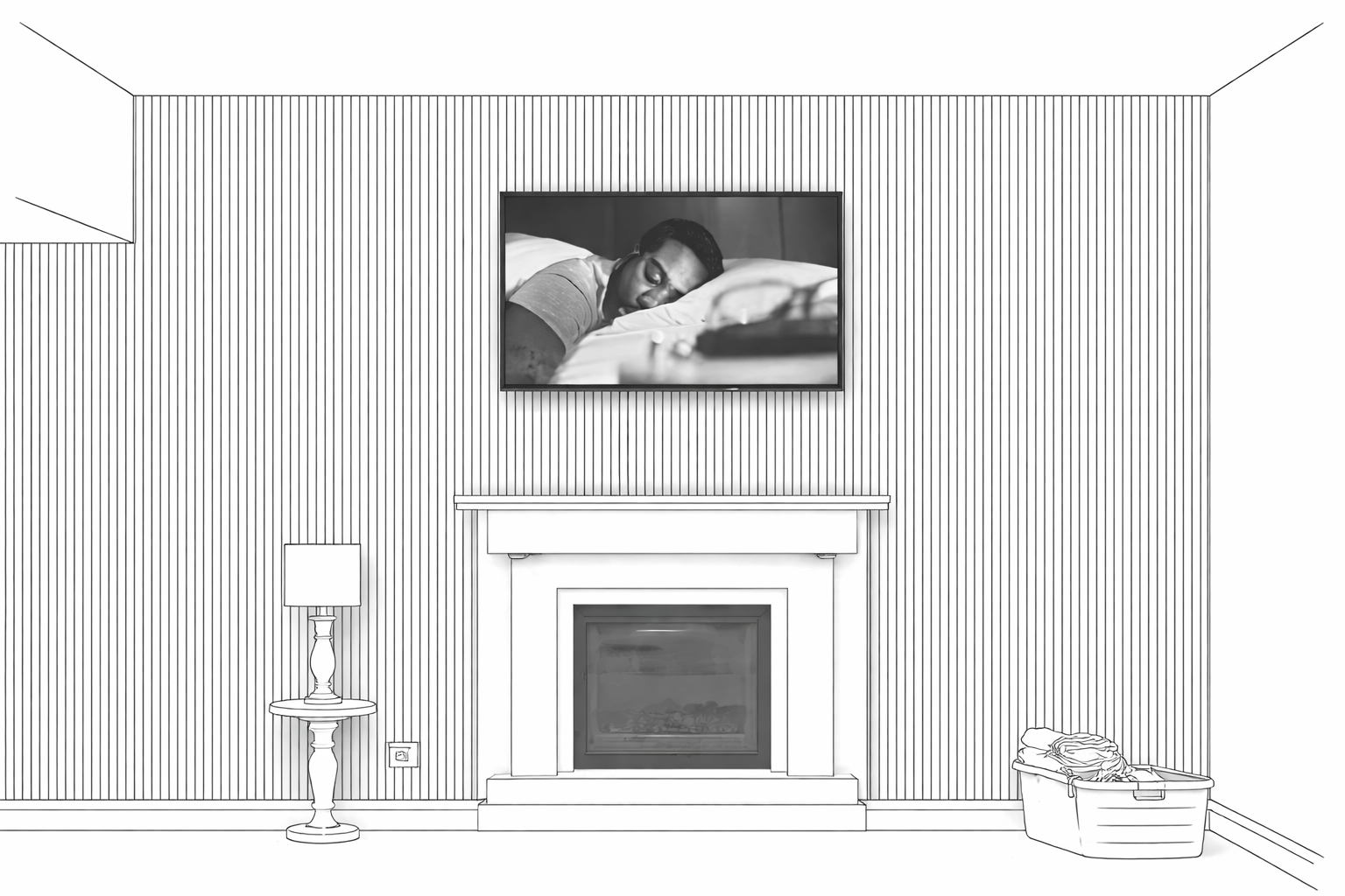 create real image slatted panels in light oak colour fireplace white
