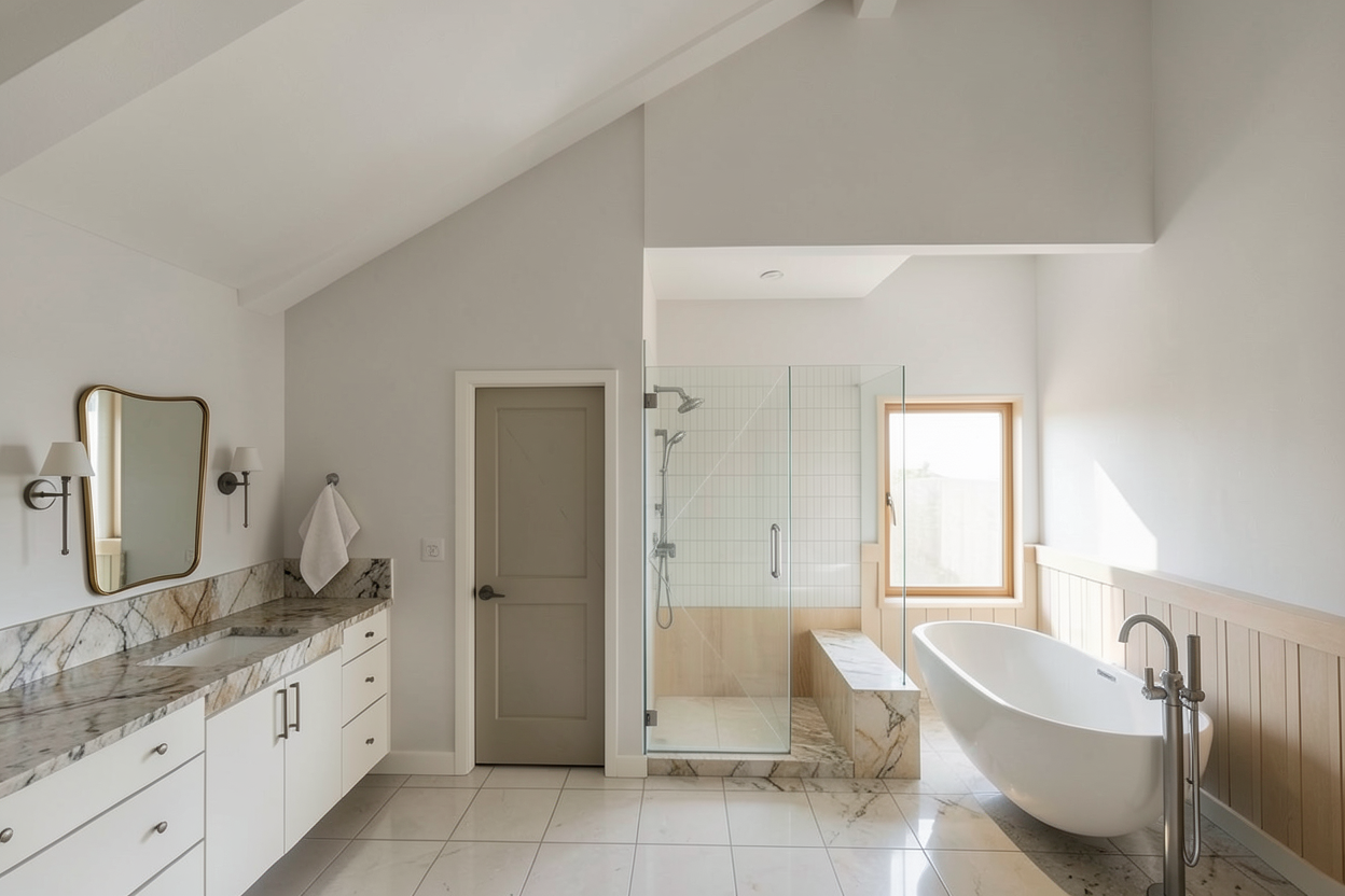 keep all materials and colors the same add in a rug and styling add tray ceiling