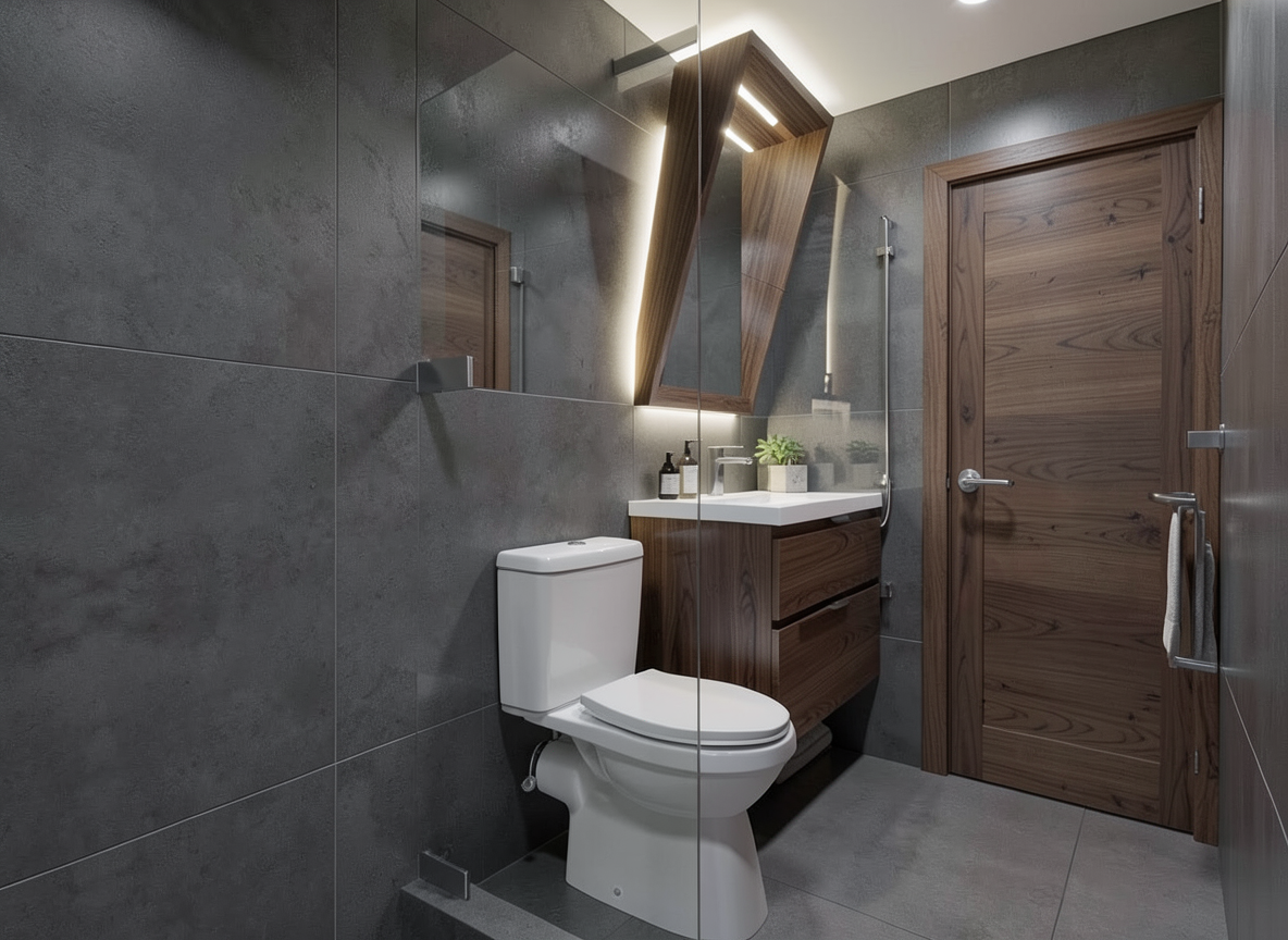 modern nurse station with glass dividers in front of the desk the floor is a blonde wood vinyl plank the space has no sunlight in it