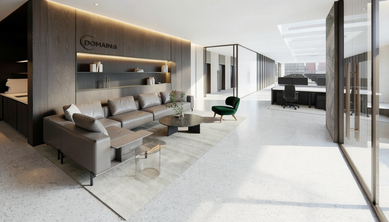 contemporary interior shot modern minimalist bedroom with large glass windows overlooking a serene winter landscape soft white walls contrast with a rich oak floor creating an inviting warmth the bed is adorned with crisp white linens and light grey pillows a sleek dark wood frame adds sophistication the far wall features a door and built in wardrobe in matte black natural light floods the room casting gentle shadows while outside bare trees are dusted with snow under a soft overcast sky the atmosphere is tranquil and cozy with a touch of elegance architecture