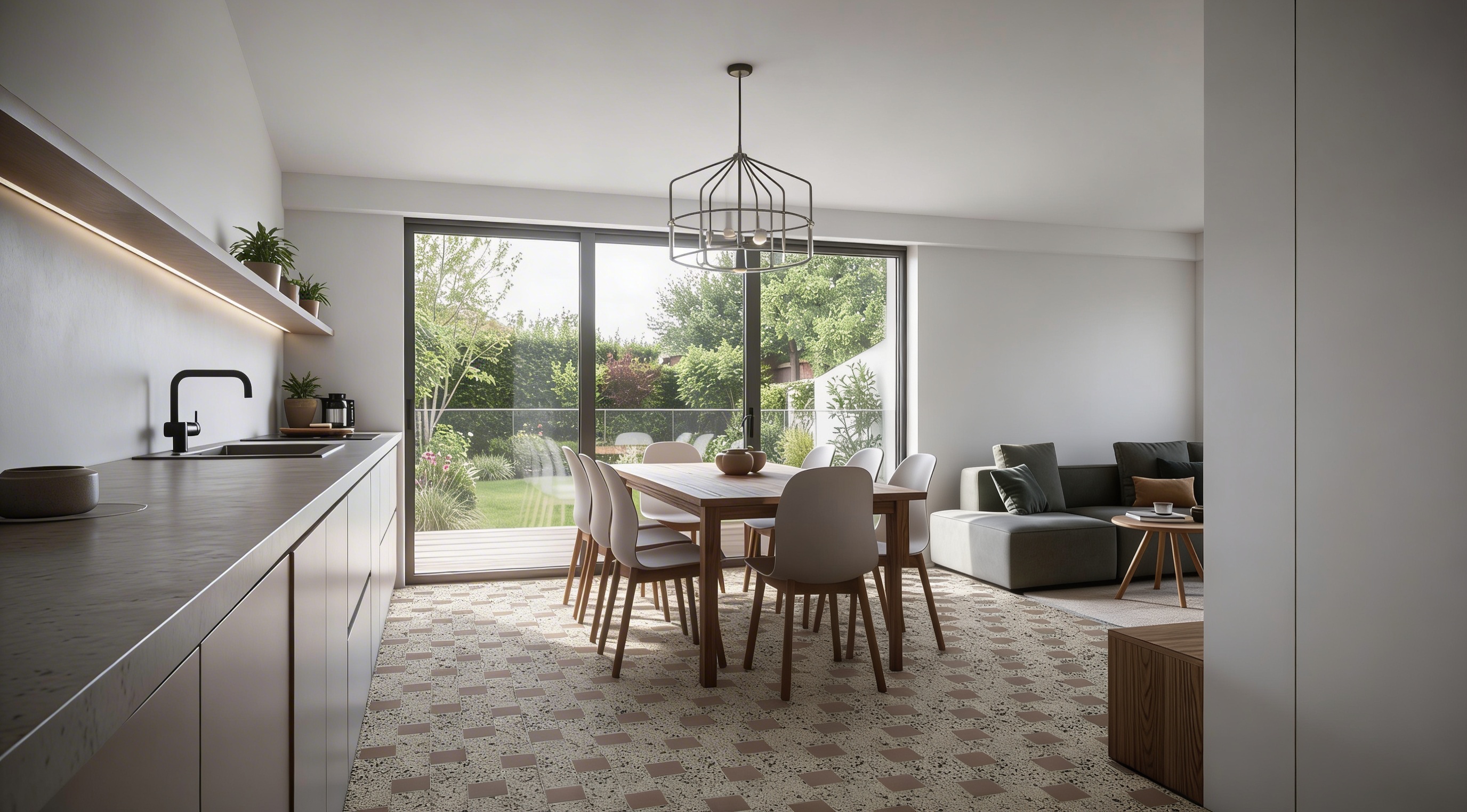 make front steps curved make front door wood tone to match garage doors make image hyper realistic add landscaping and sidewalk leading to front door