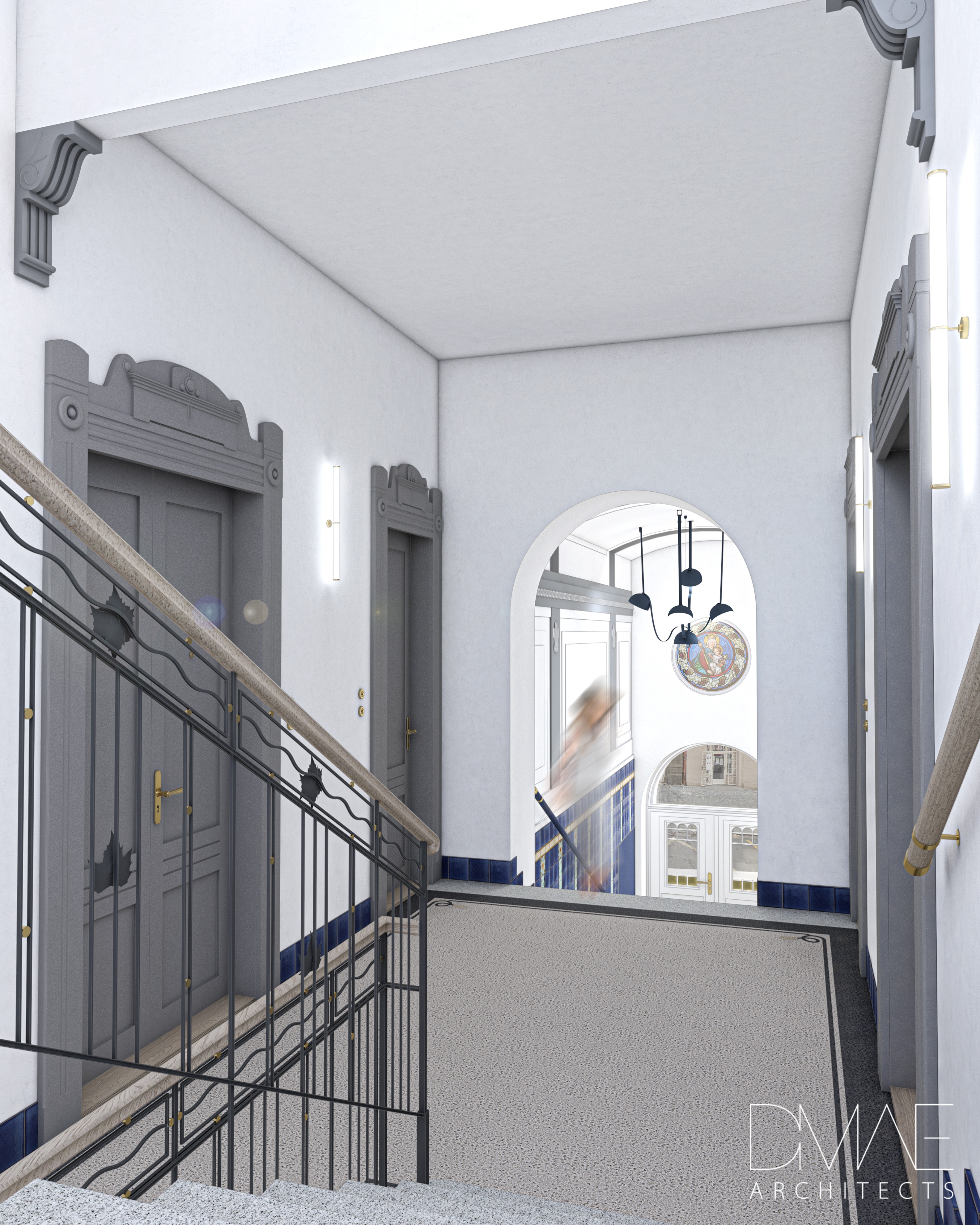 photorealistic interior visualization soft light semi matt gray color terrazzo floor color according to the picture natural white plaster