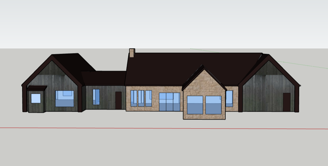 in a prarier manicured yard black metal roof