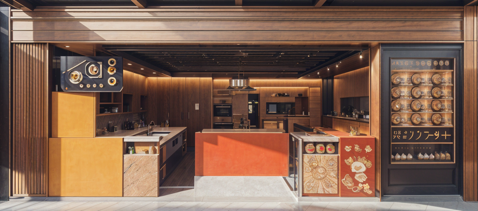 a casual yakiniku restaurant appetizing friendly easy to enter japanese style use concrete wall architecture