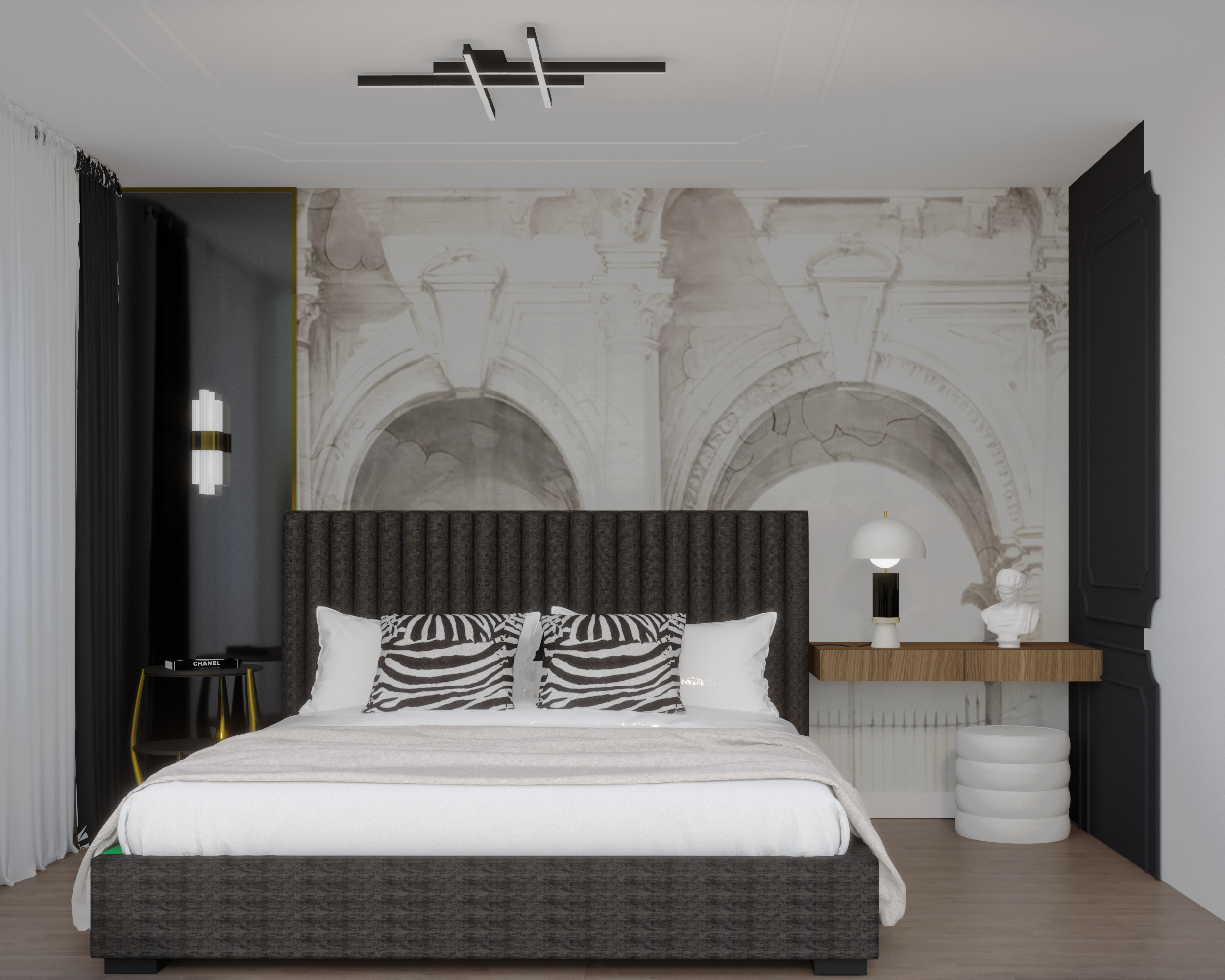 leave same colors just make it more realistic dont change any element in photo i want better bed fabric in black