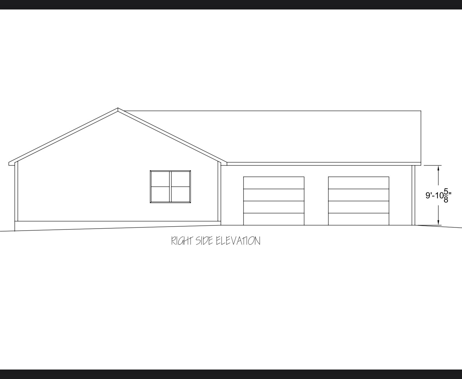black metal roof white vinyl siding black windows white garage doors with black trim